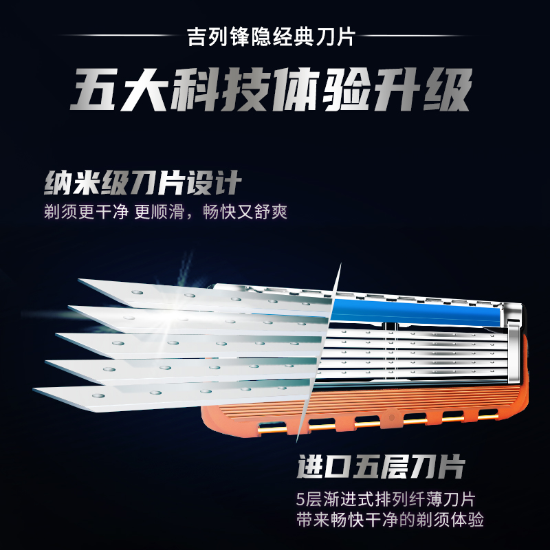 吉列锋速5刀片锋隐男士吉列剃须刀手动老式套装5层刮胡刀刀头正品