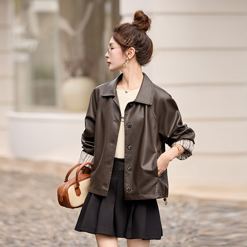 美拉德短款皮衣女春秋季2025新款高级感小个子时尚流行机车服夹克