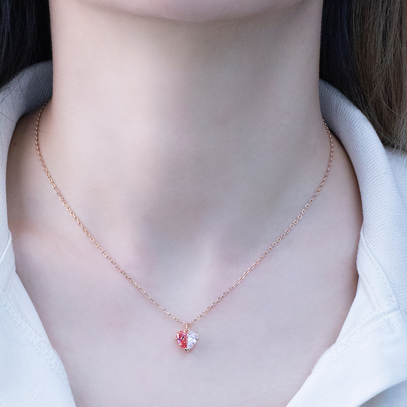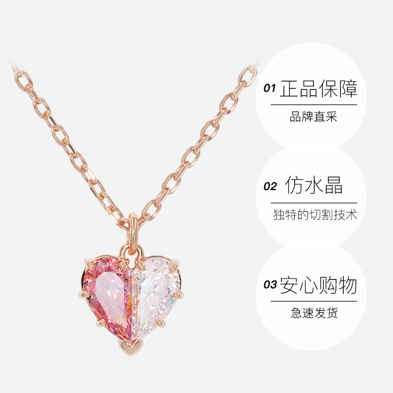Swarovski/施华洛世奇新品粉钻白色拼接半边爱心女项链5656577