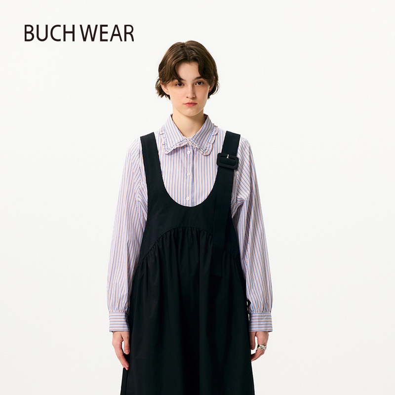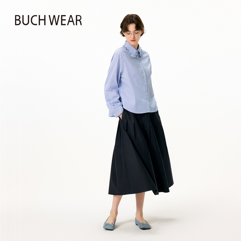 BUCH WEAR衬衫女2025秋季新款时尚简约花边领短款长袖上衣459779