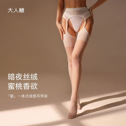 大人糖「蜜」一体式绒感吊带连裤袜蜜桃香味丝袜性感防勾丝打底裤
