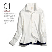 白色内搭外穿衬衣女秋冬新品亲肤针织全棉时尚撞色松紧摆长袖衬衫