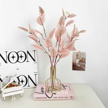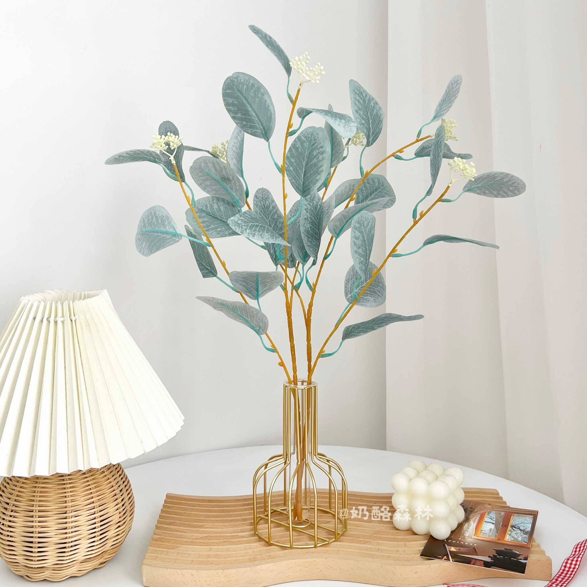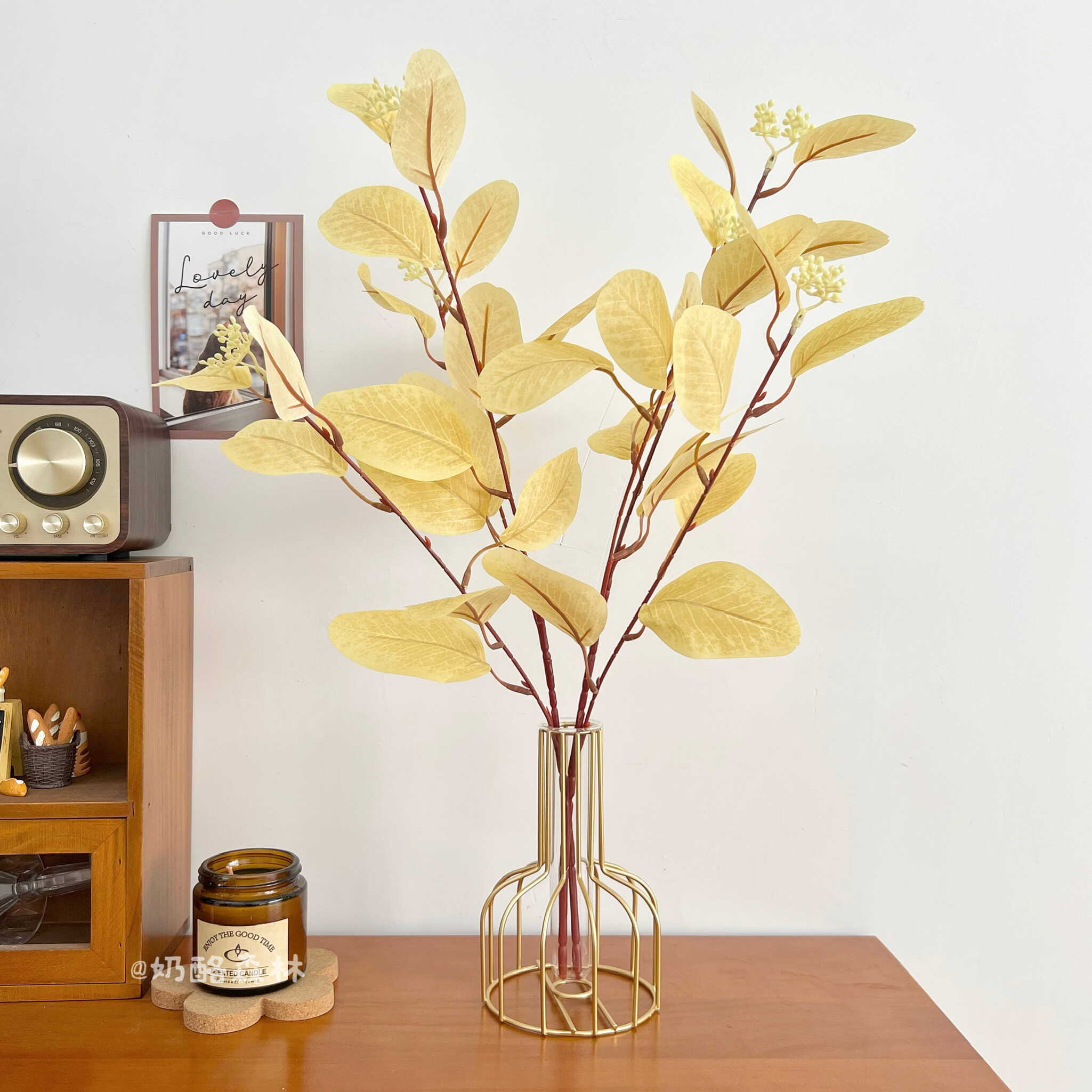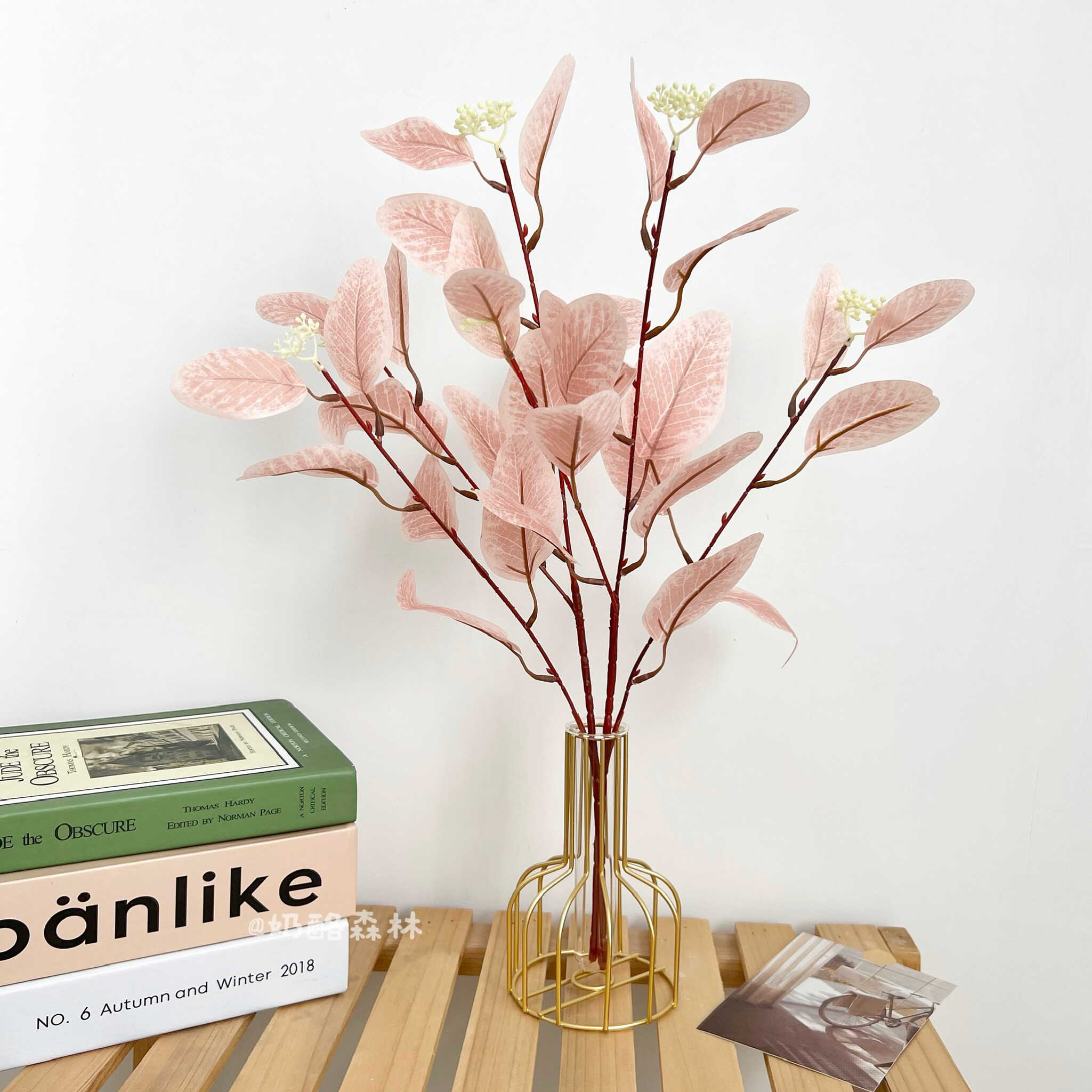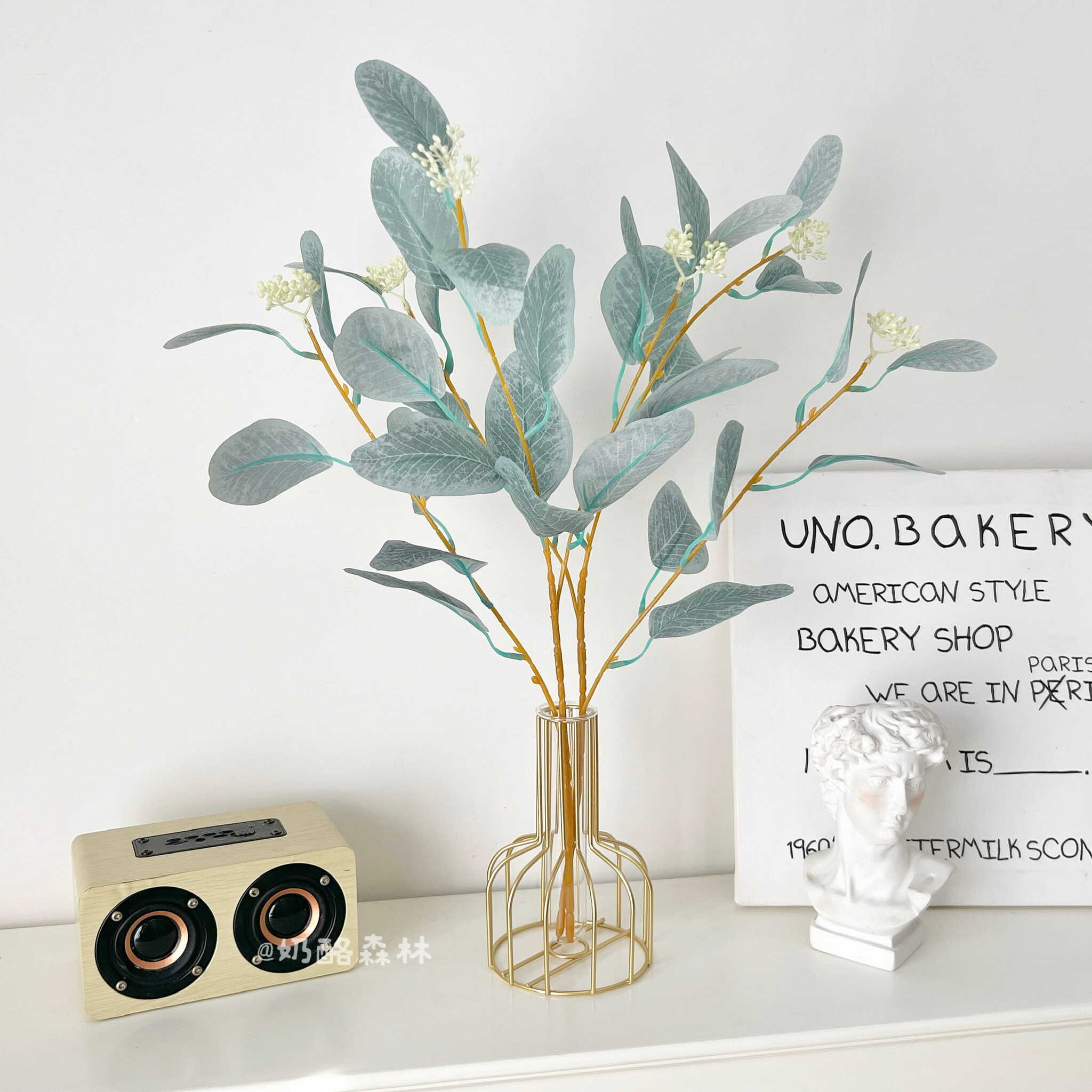 彩色尤加利叶子仿真植物装饰假花玻璃花瓶餐桌客厅玄关插花摆件