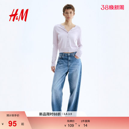 HM女装毛针织衫2026春季新款浅春系穿搭细密薄款针织开衫0579541