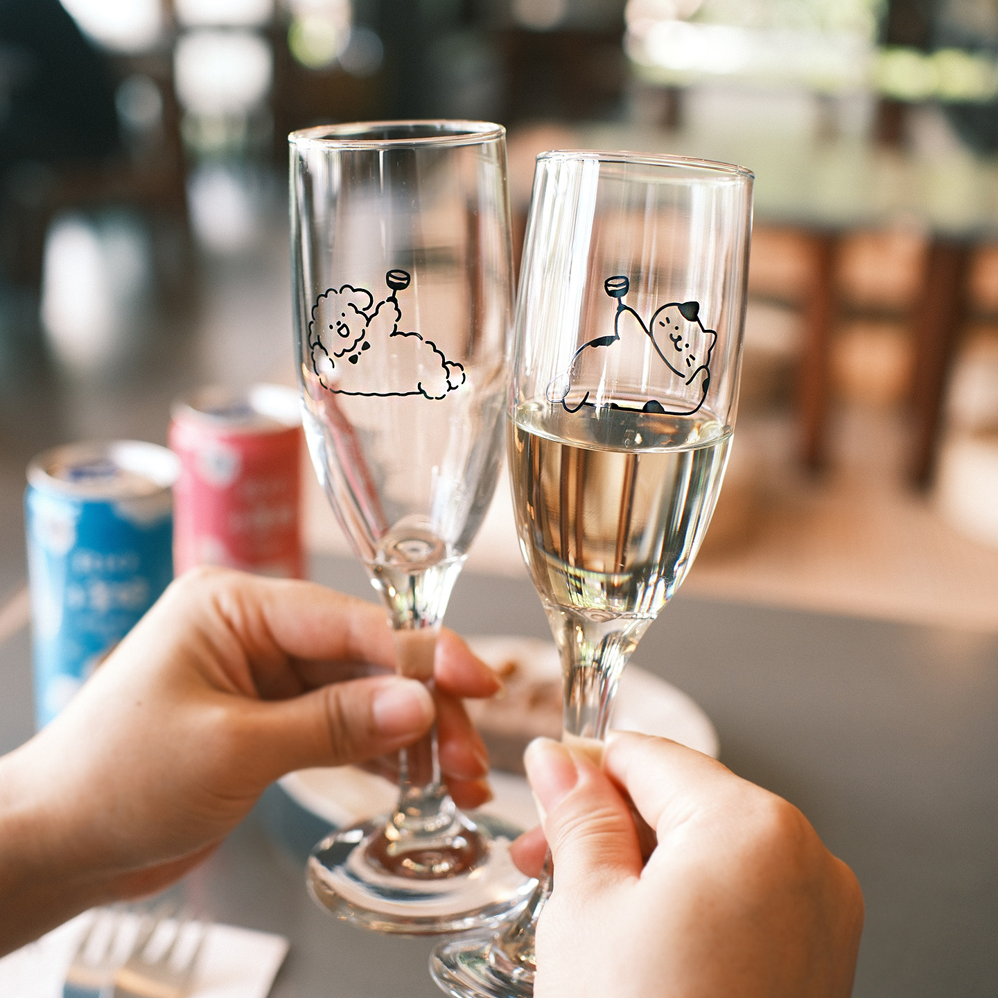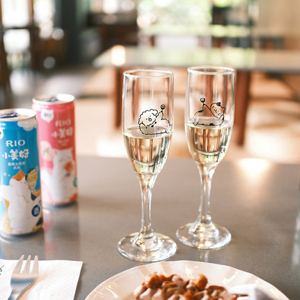 气泡招待所‘原创简笔画举杯小狗玻璃杯红酒杯甜酒杯氛围感高脚杯