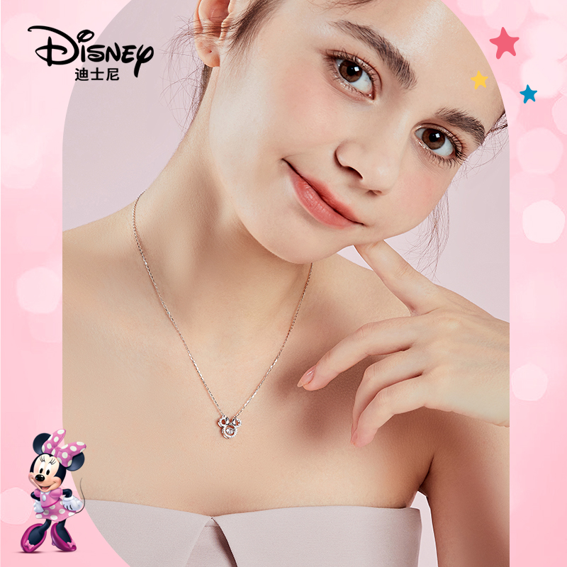 迪士尼女孩生日礼物镂空纯银项链女款轻奢小众锁骨链情人节送女友