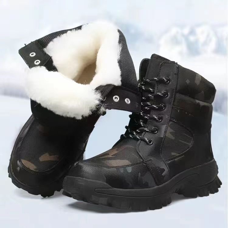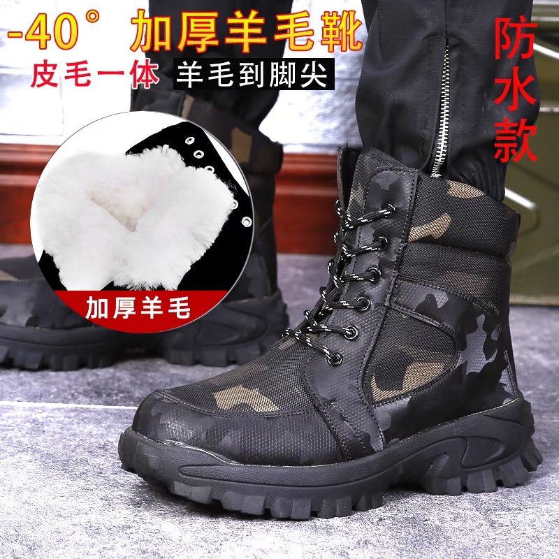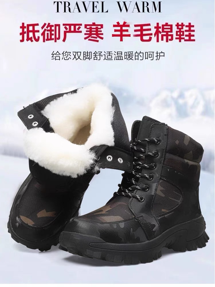 冬季高帮羊毛靴加绒加厚雪地靴男皮毛一体防水抗寒棉靴户外登山鞋