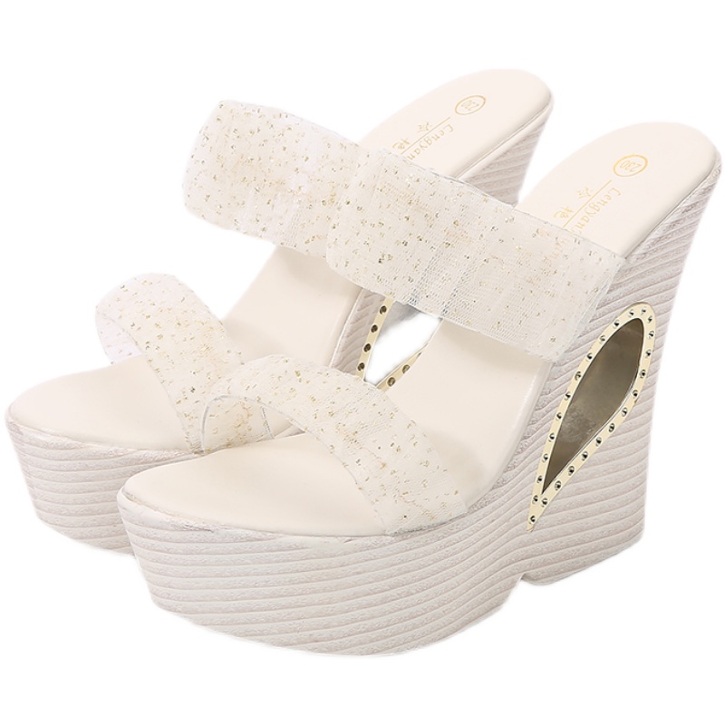 时尚外穿凉拖鞋女2021年v新款厚底坡跟半拖鞋超高跟透明松糕凉鞋