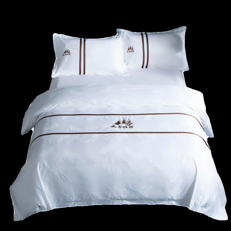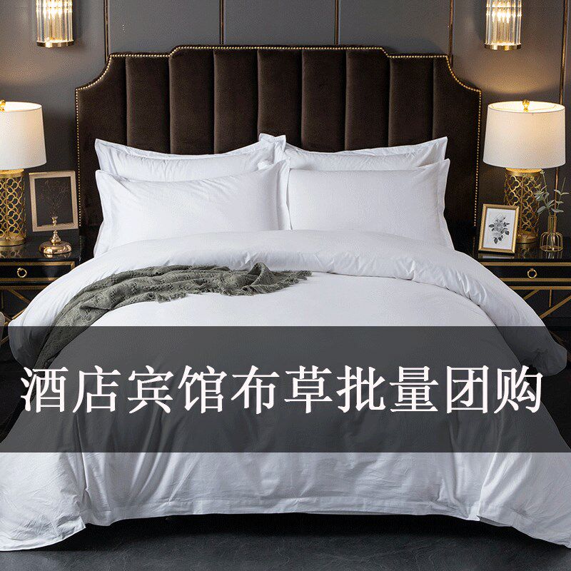 酒店宾馆布草四件套白色被套床单民宿床上用品被子一整套