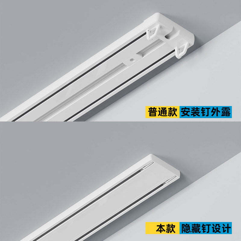 铝合金窗帘轨道双轨滑轨隐形一体式窗帘盒双层窗帘杆静音滑轮顶装