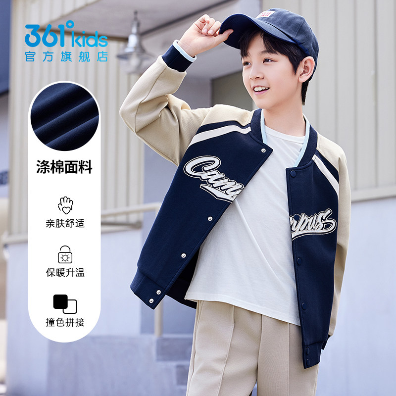 361°童装男女童休闲运动针织外套2026春季新款中大童上衣棒球服