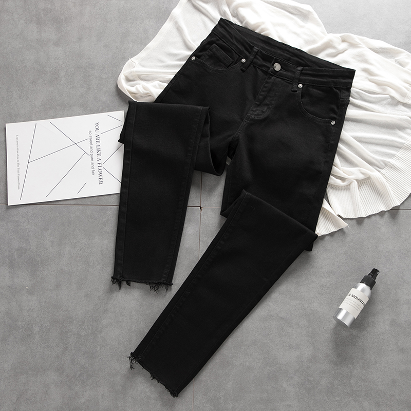 简单版毛边九分牛仔裤男春夏韩版休闲潮流黑色修身弹力百搭小脚裤