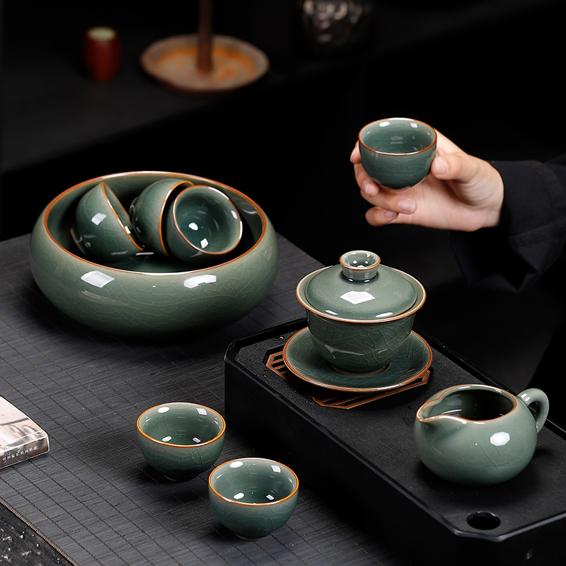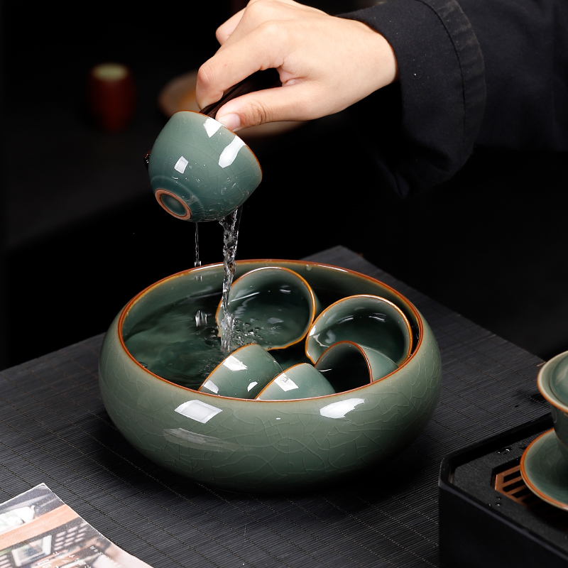 哥窑茶洗陶瓷功夫茶具茶道零配水盂大号复古中式水洗家用笔洗洗杯
