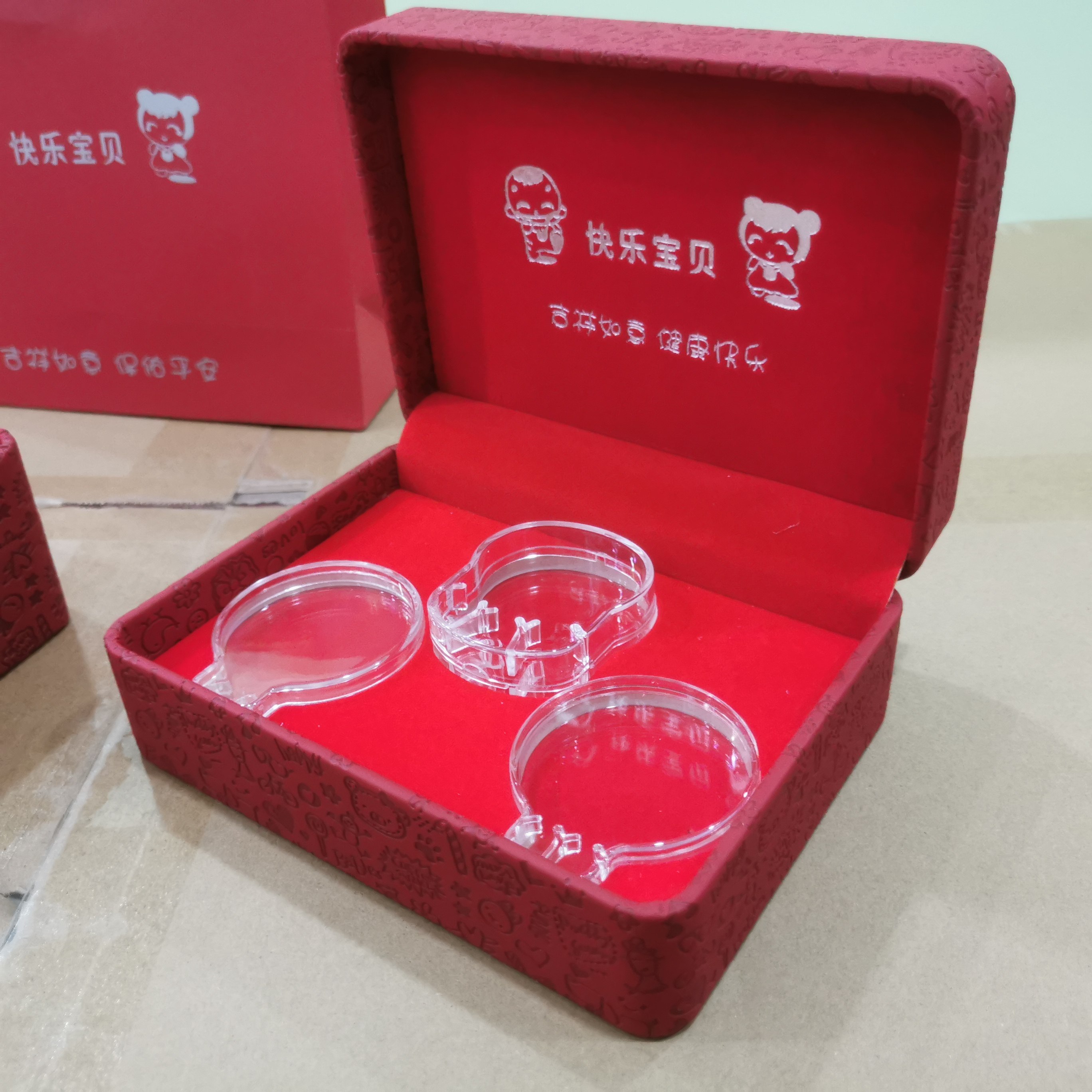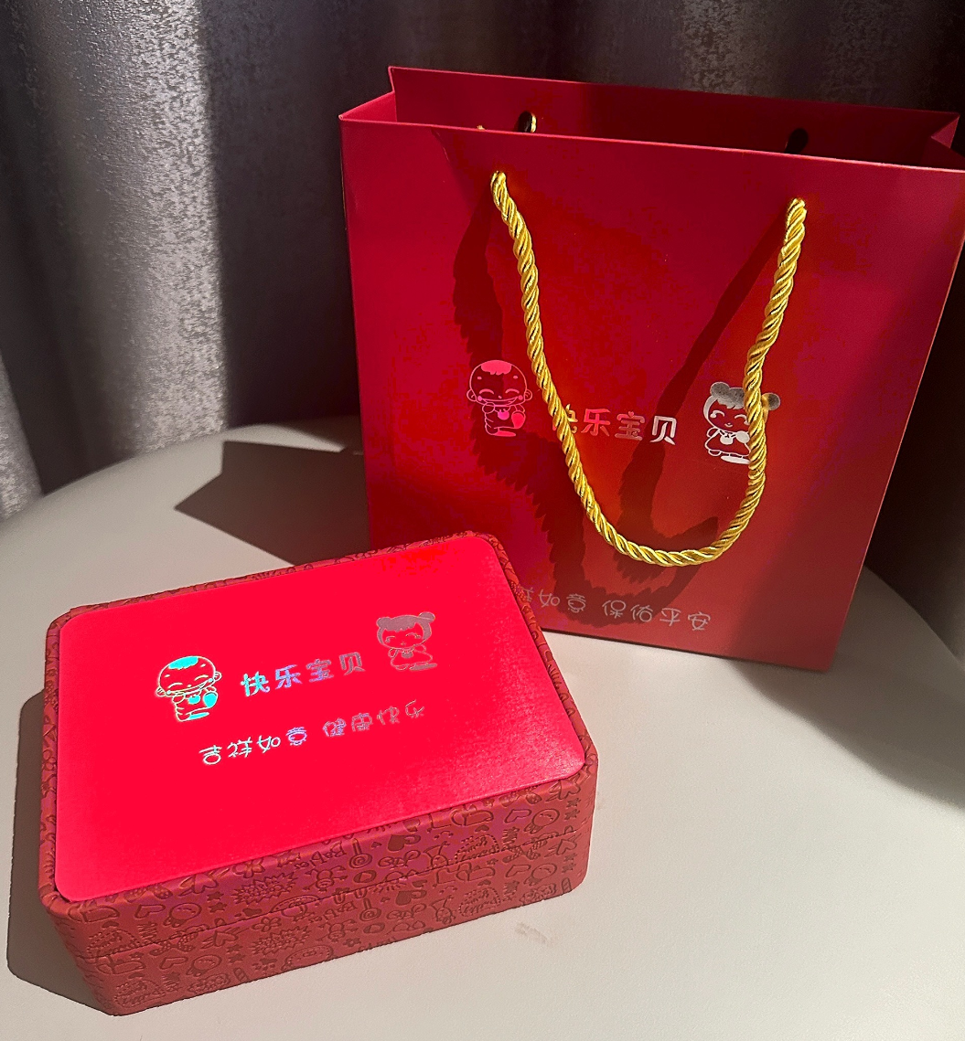 快乐宝贝项圈盒宝宝金项圈银项圈收纳盒儿童手镯长命锁套装盒定制