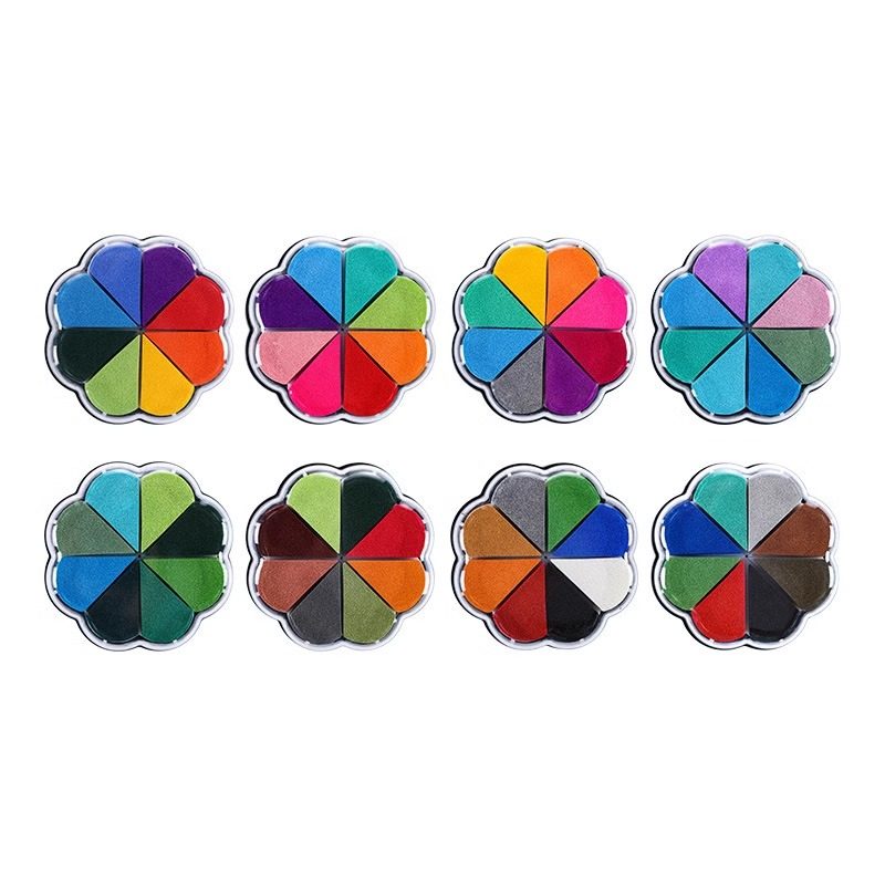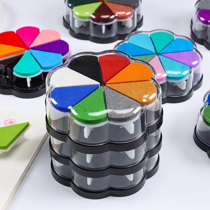 8色花瓣印泥柔软海绵彩色印泥DIY橡皮章印台儿童小学生手指画手掌相册手帐彩虹色水性印泥可爱水滴印台印章