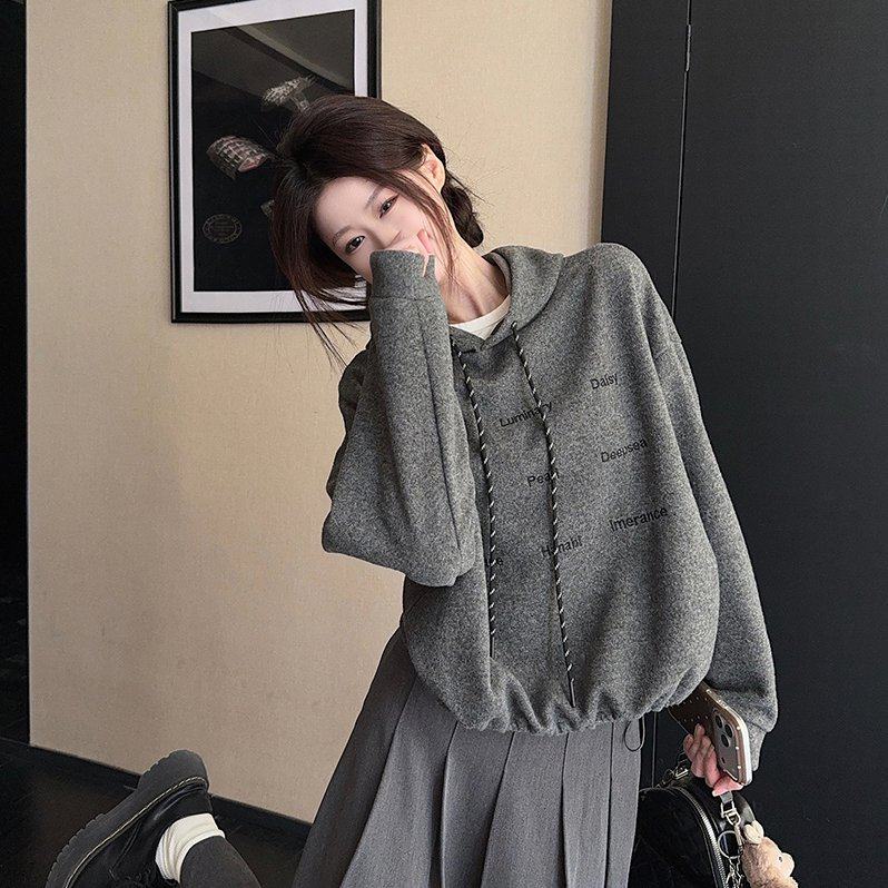 实拍加绒加厚550克卫衣女2025韩版新款宽松秋冬连帽保暖上衣