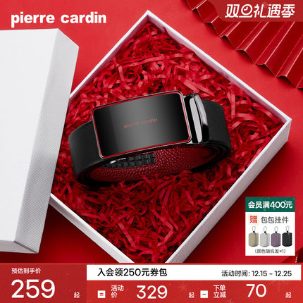 【本命年】皮尔卡丹皮带男真皮新款红色腰带男士礼物正品牛皮裤带