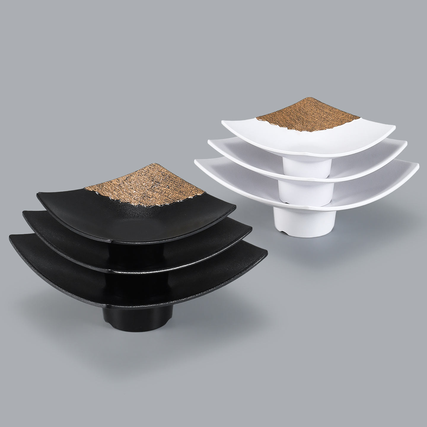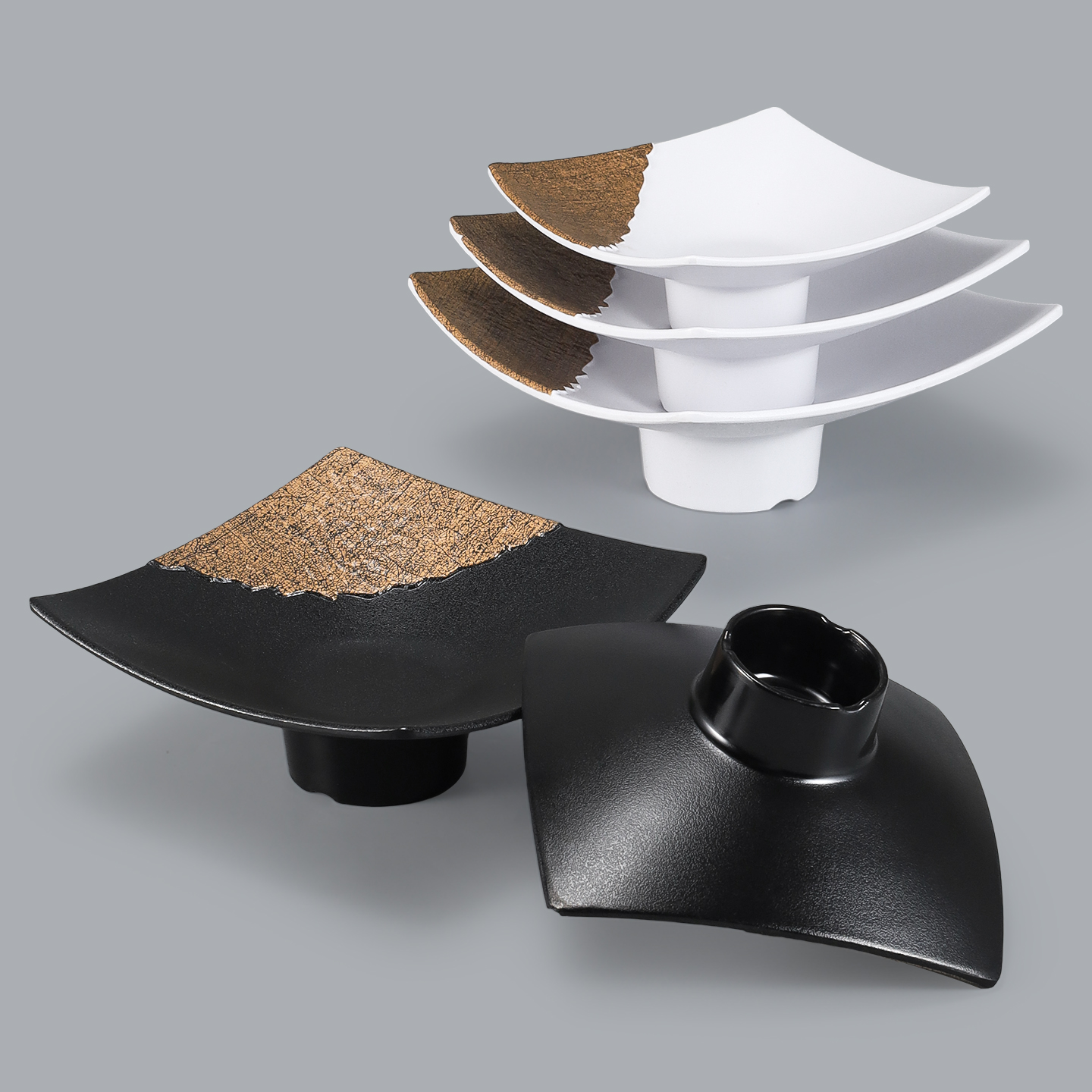 凯柏雅密胺日式四方高脚菜盘子商用餐厅凉菜小吃茶点盘沙拉水果盘