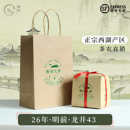 2026年西湖龙井43明前茶绿茶茶叶正宗茶农直销自喝送礼纸包预售