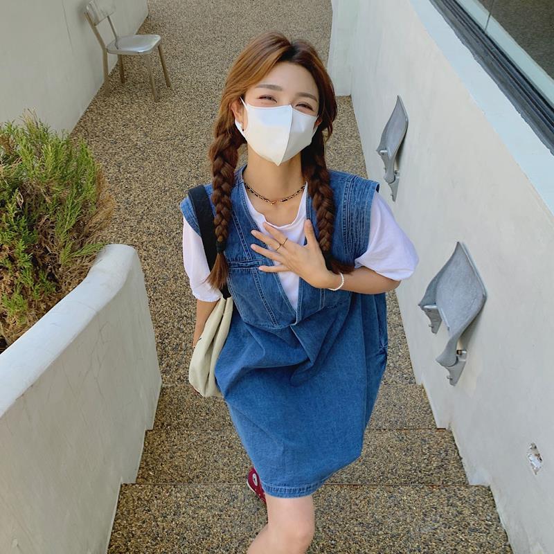 日本轻奢小个子假两件牛仔连衣裙女2024夏季薄款宽松港味复古裙子