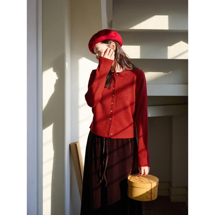 「MISAZ」新年氛围!爱心纽扣圆领毛衣 细针编织 刺绣针织开衫