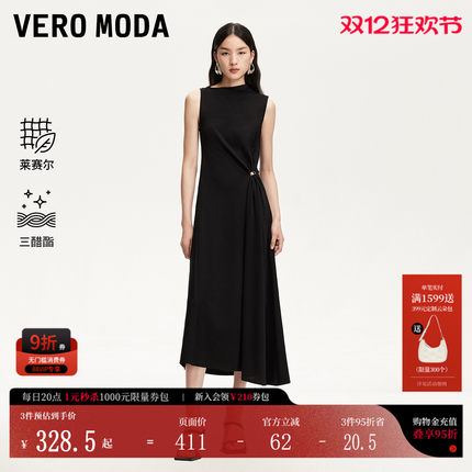 Vero Moda连衣裙女25夏季新款金属不规则裙摆莱赛尔天丝325261022
