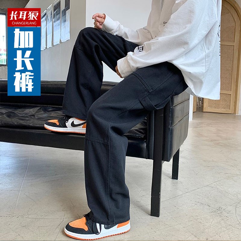 冬季加绒厚款高个子190cm加长版男裤潮休闲工装阔腿直筒裤青少年