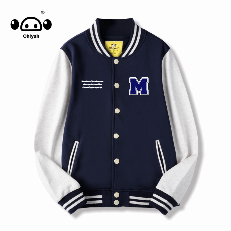 Ohlyah国潮牌秋季情侣嘻哈黑白拼接棒球服女宽松休闲夹克外套女