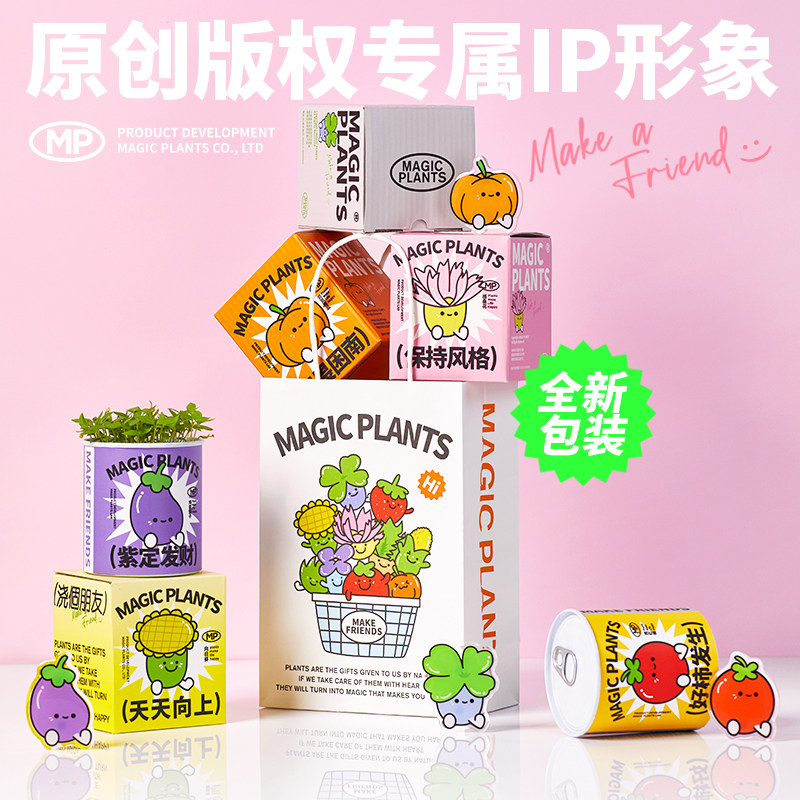 神奇植物罐头植物西红柿向日葵种子室内盆栽绿植冰箱贴新年礼物