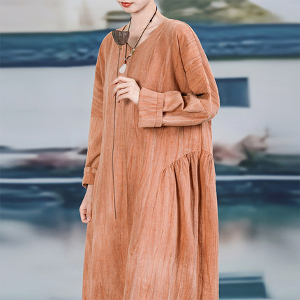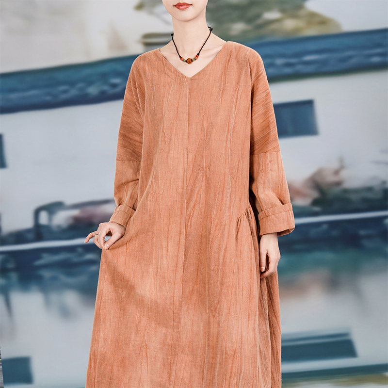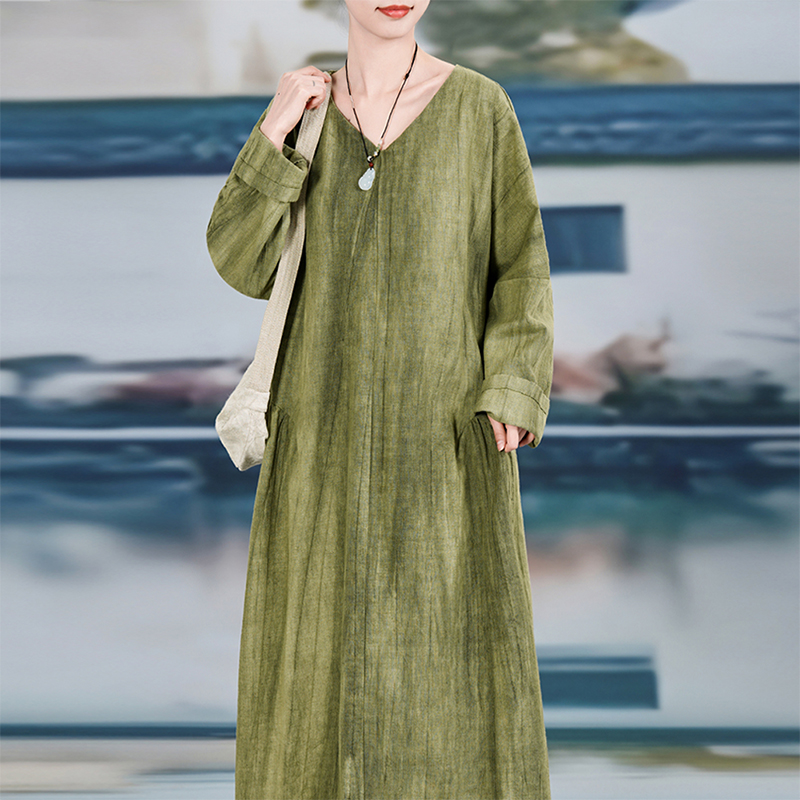 苎麻复古中式连衣裙女2025春季新款手工扎染长裙棉麻宽松长袍裙子