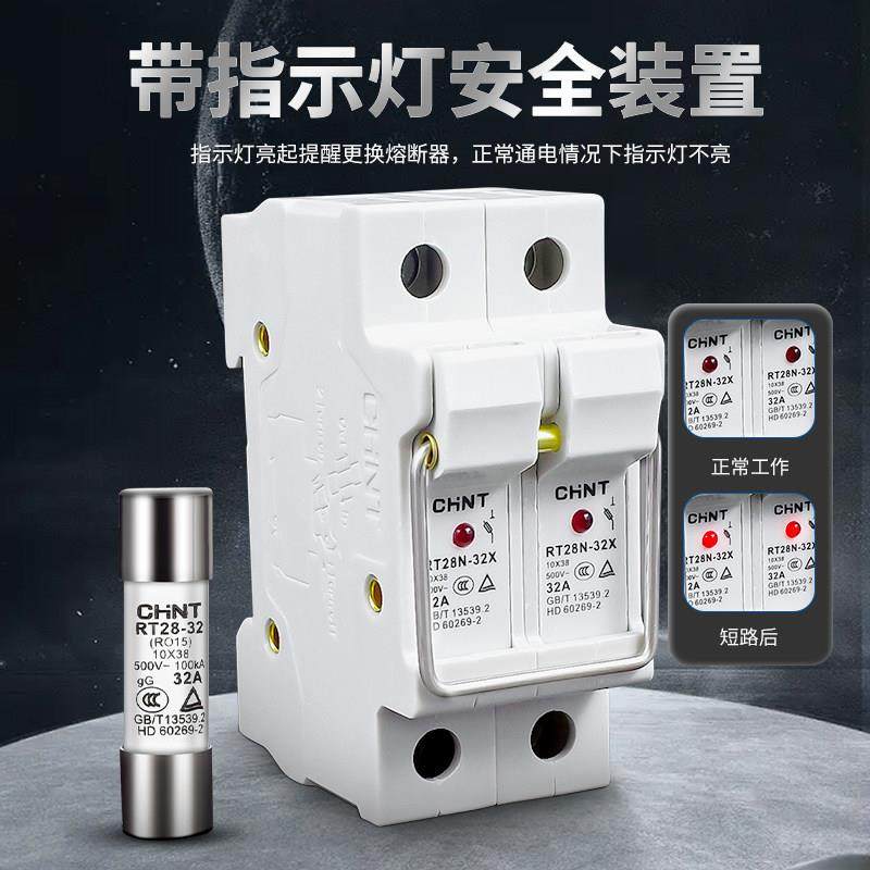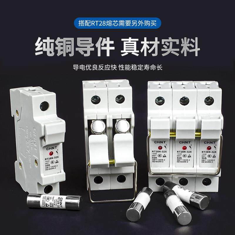 正泰陶瓷熔断器保险丝座RT28N-32保险丝座1P2P3P带灯导轨式RT18