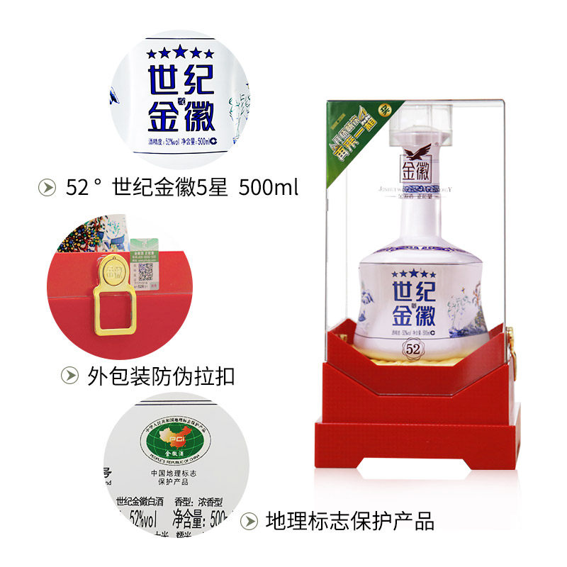 甘肃名酒52°/42°世纪金徽五星浓香型白酒特价礼盒装酒水500ml*1