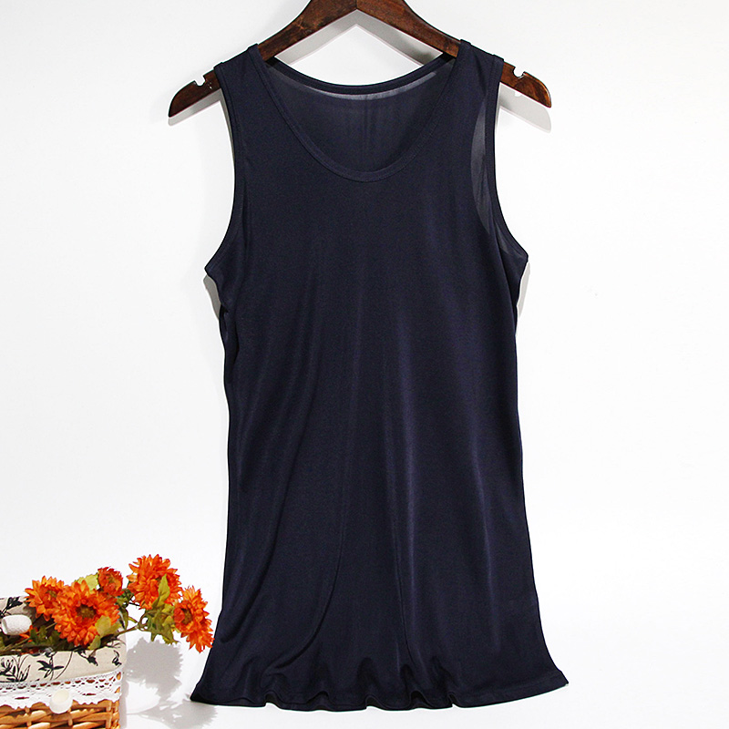 桑蚕丝无袖背心夏外穿男大码宽松薄款跨栏健身背心真丝汗衫爸爸衫