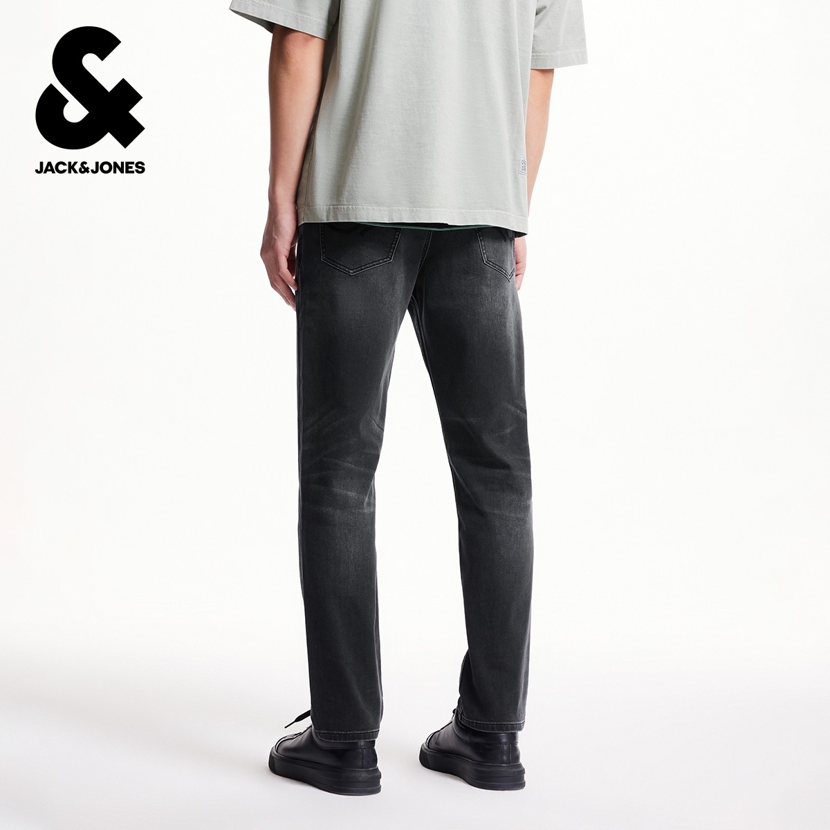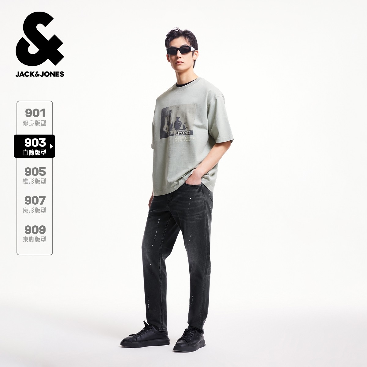 903杰克琼斯秋季牛仔裤直筒水洗猫须设计泼墨设计感长裤子男装士