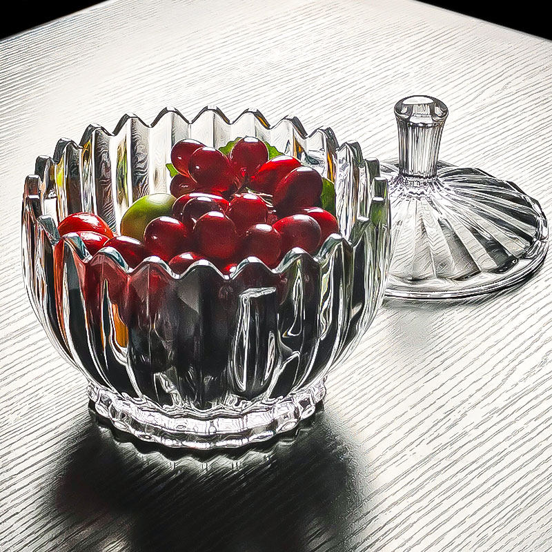 2026新款水晶玻璃碗带盖糖果罐水果盘精致果盘收纳盒醉虾盘子容器