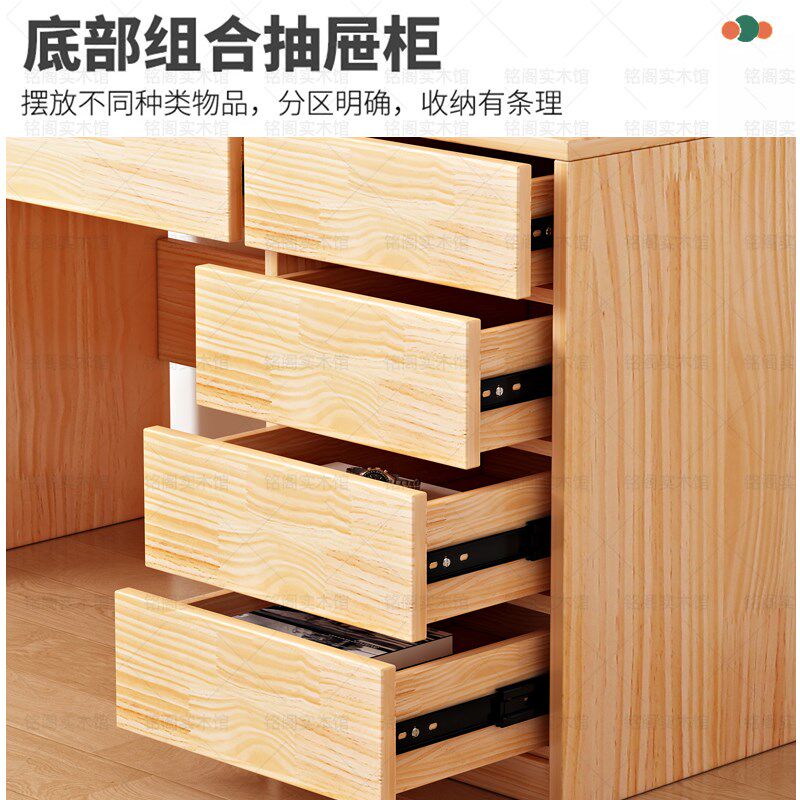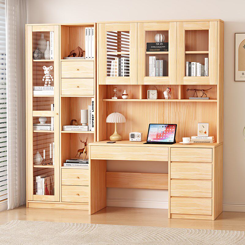 全实木书桌书架一体带抽屉书柜儿童学习桌现代简约电脑桌书房桌子