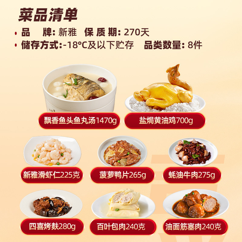 新雅8道半成品菜家宴礼包年夜饭快手虾饺酒店预制菜年菜送礼团购