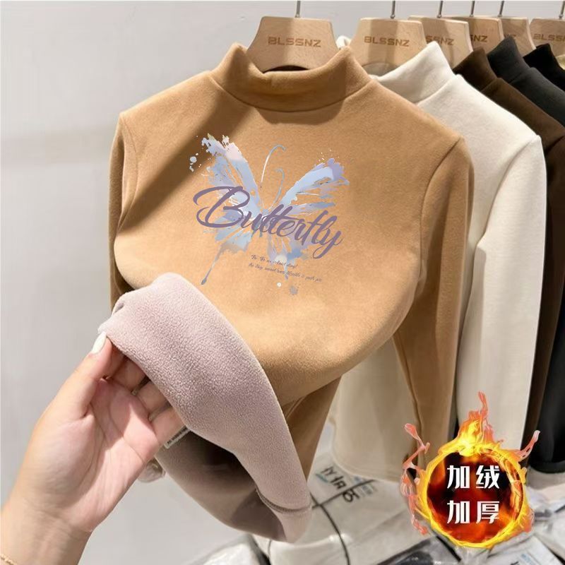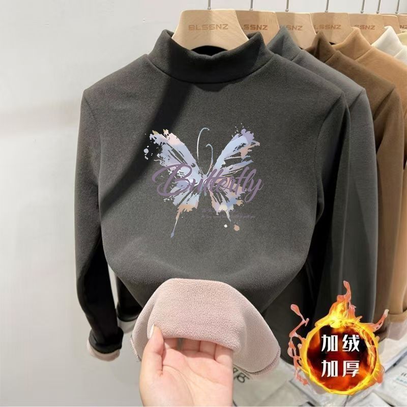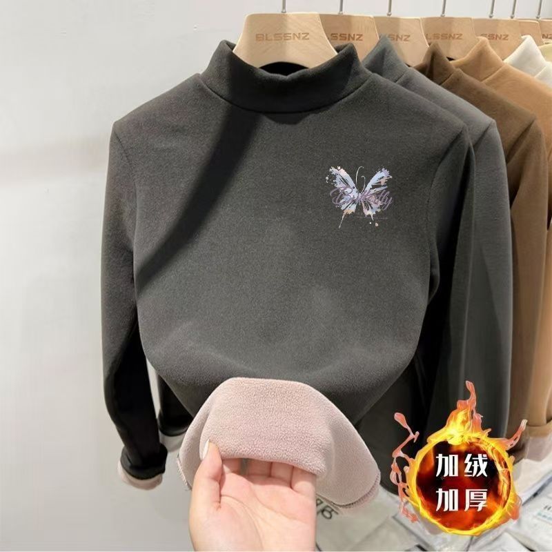 德绒一体加绒加厚男童打底衫冬季洋气百搭女童半高领保暖上衣