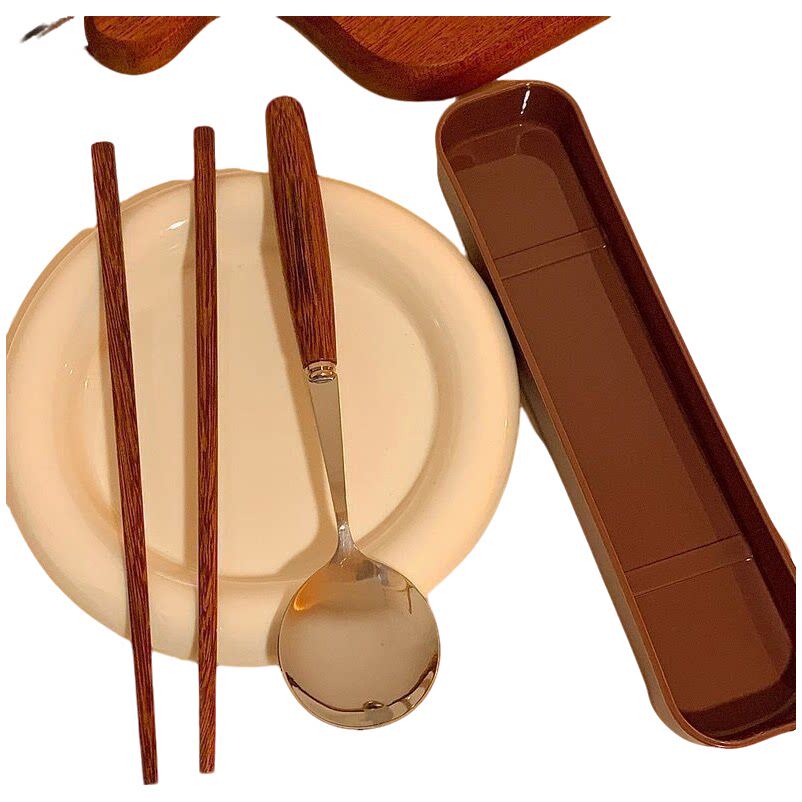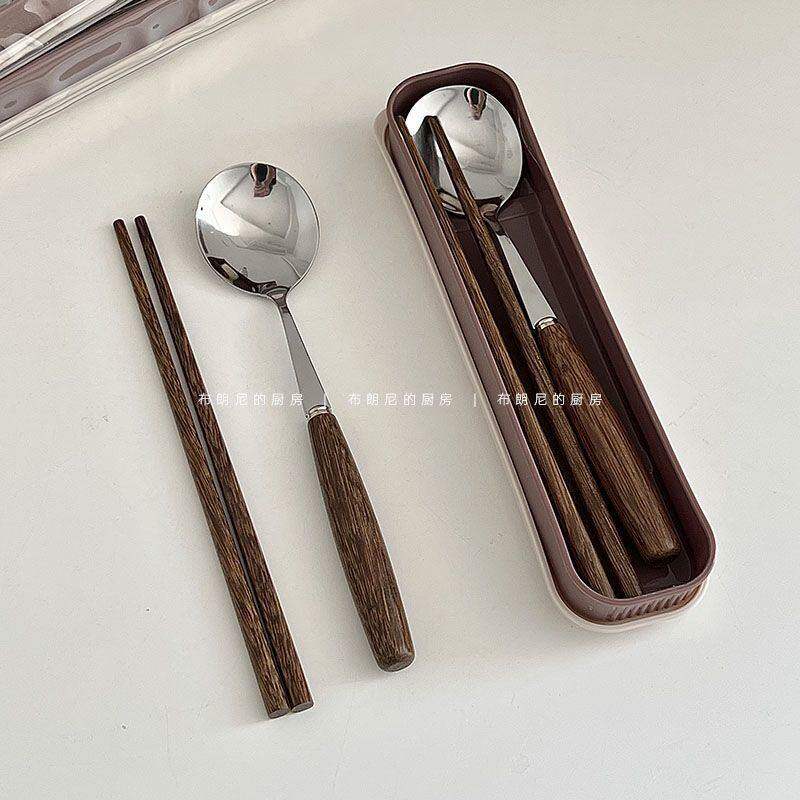 ins韩国实木质筷子勺子隔热套装便携餐具复古一人学生上班族专用