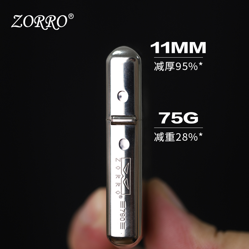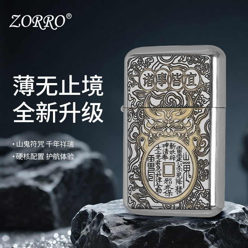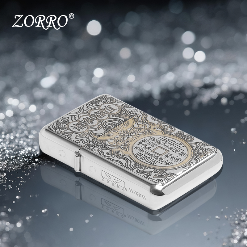 zorro佐罗官方正品790薄款白镍山鬼花钱油复古打火机高颜值节日送