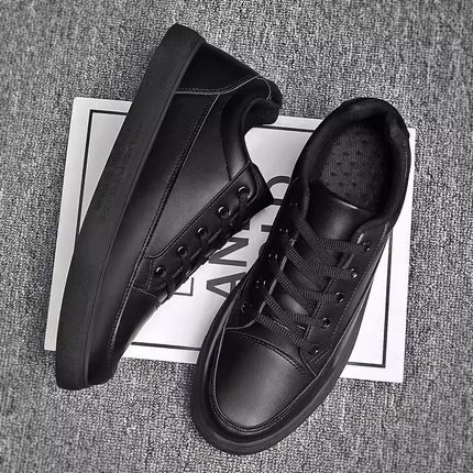 休闲皮鞋男夏季黑色厨房厨师工作板鞋男士透气大码运动防水防滑鞋