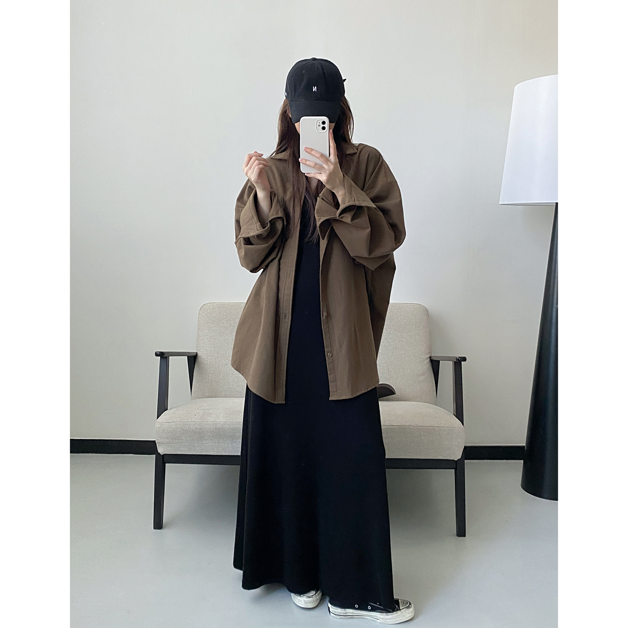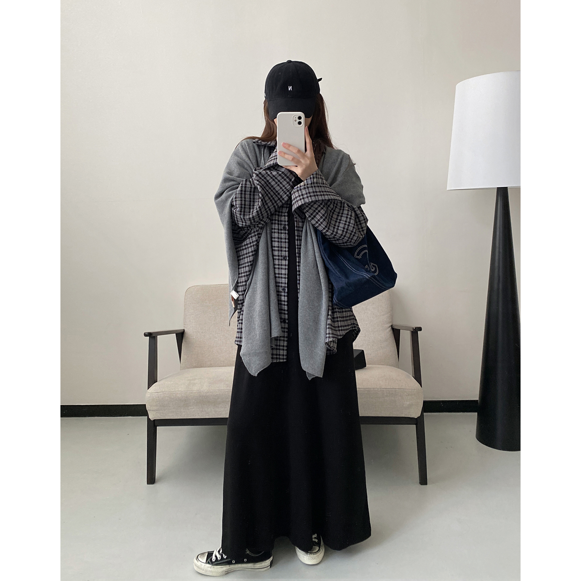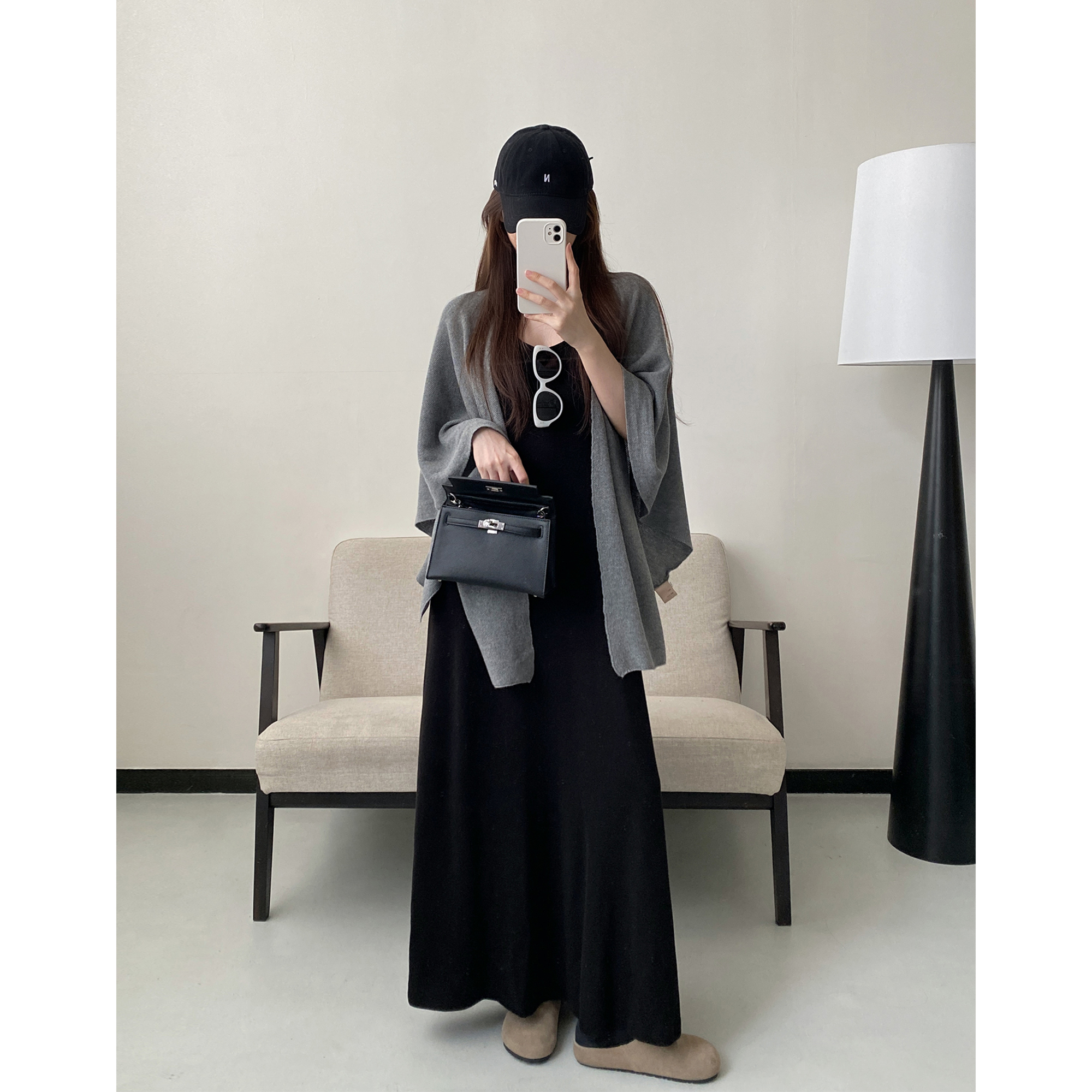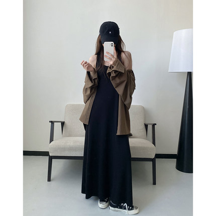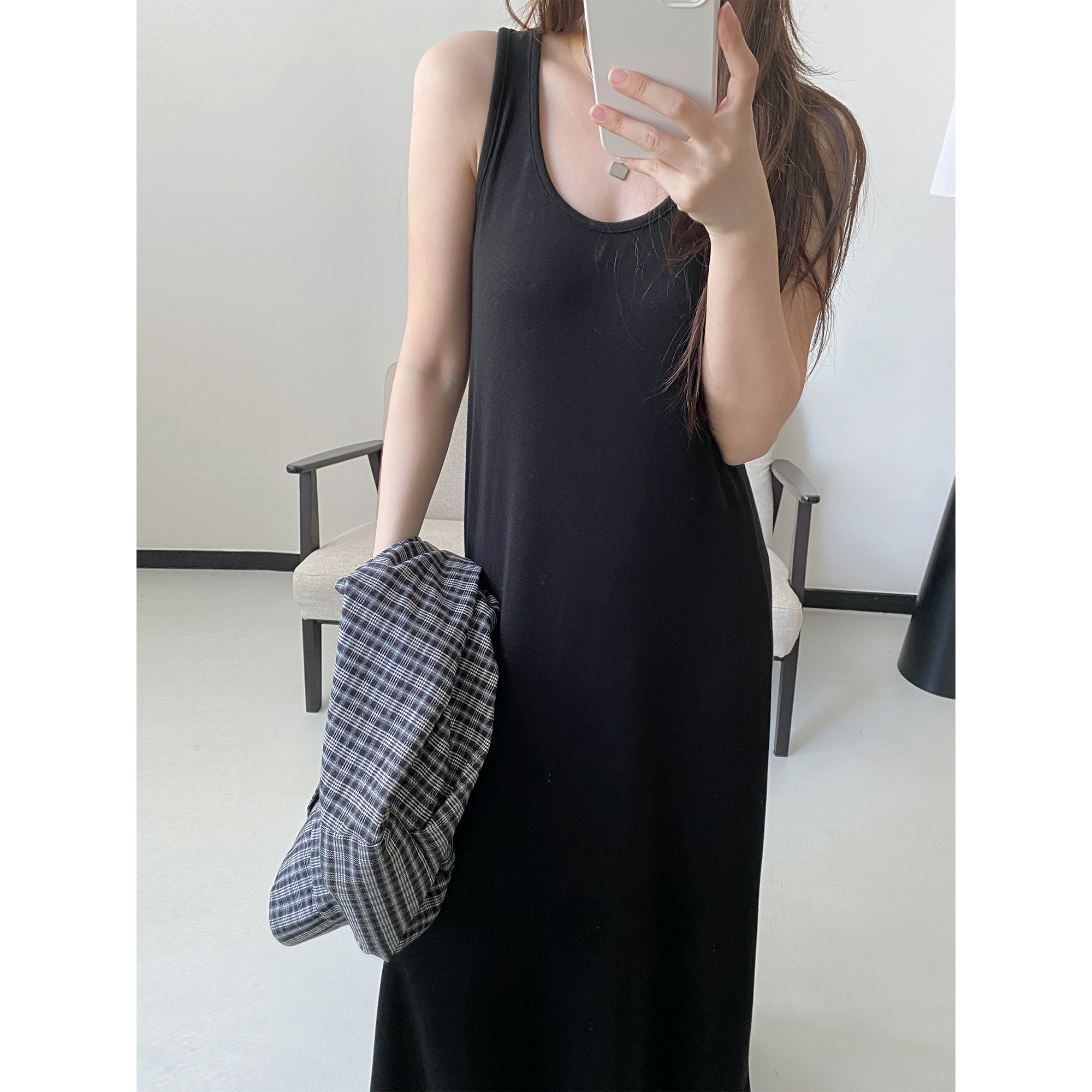 sun柚 加厚柔软垂坠拖地无袖宽松背心连衣裙子气质松弛感慵懒长裙