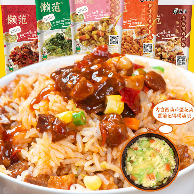 苏伯懒范干拌饭自热米饭懒人速食方便米饭自熟免煮冲泡米饭料理包