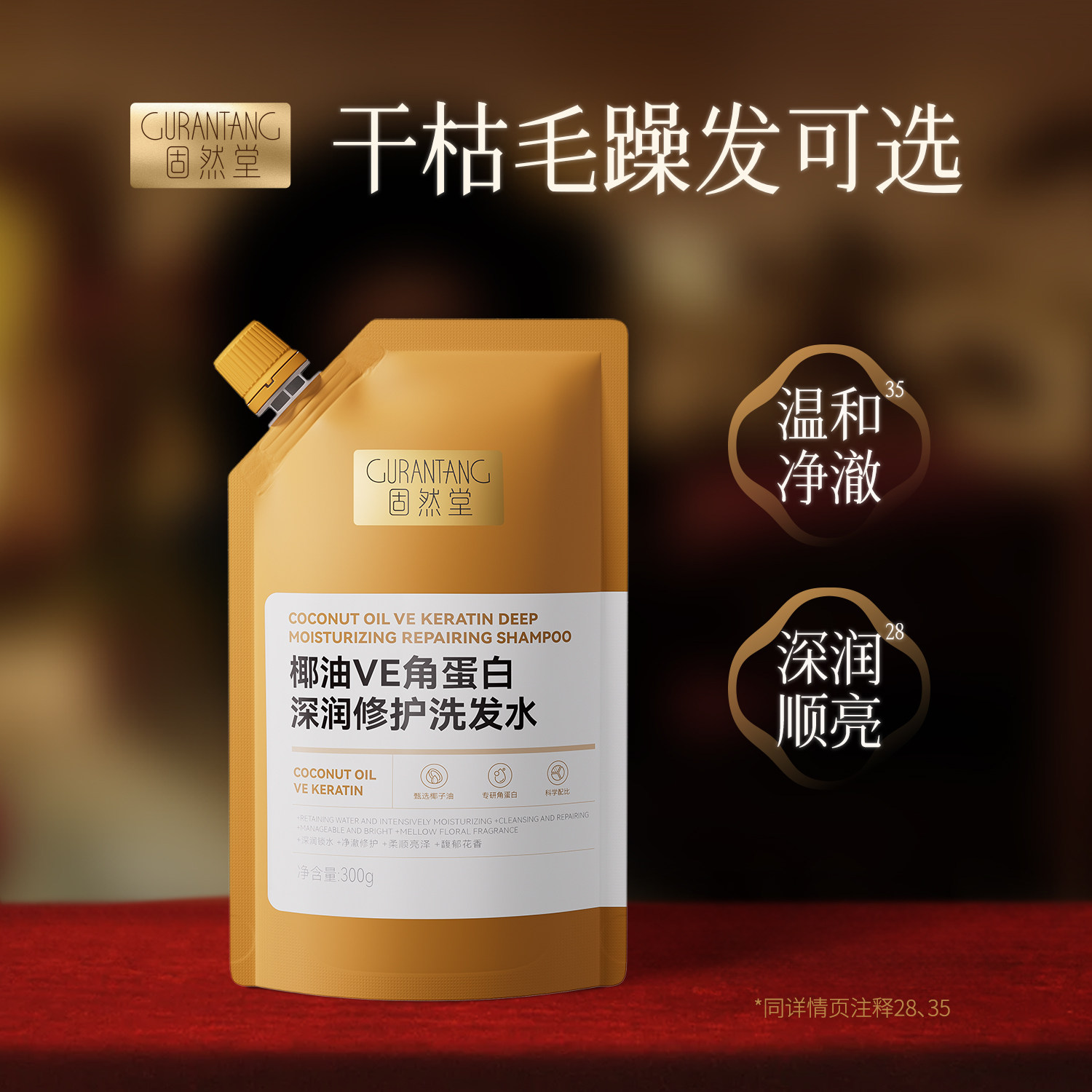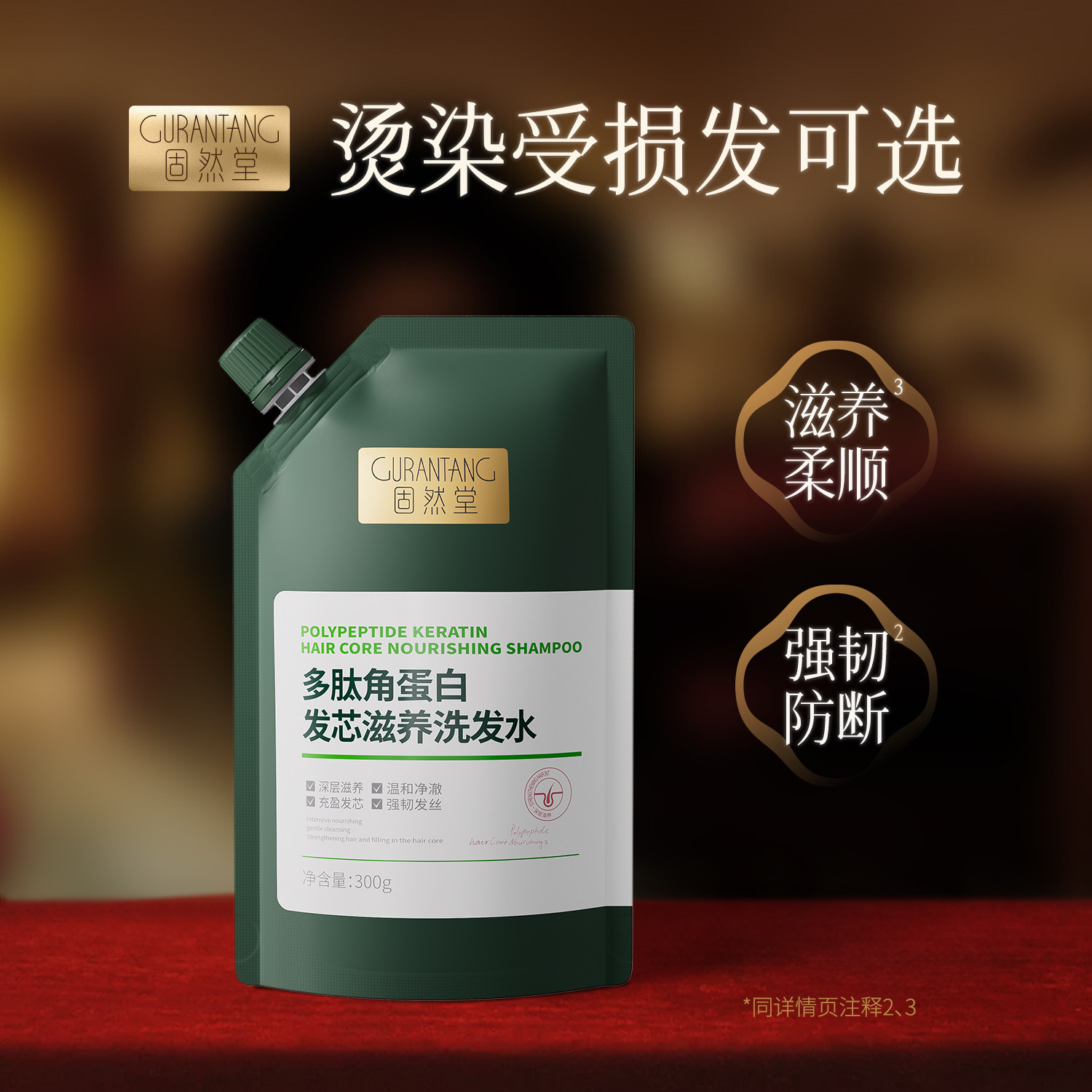 固然堂角蛋白滋养洗发水控油蓬松去屑固色护色防断发洗发露3袋装