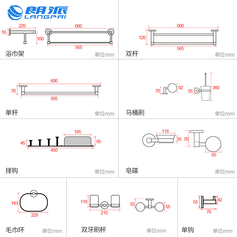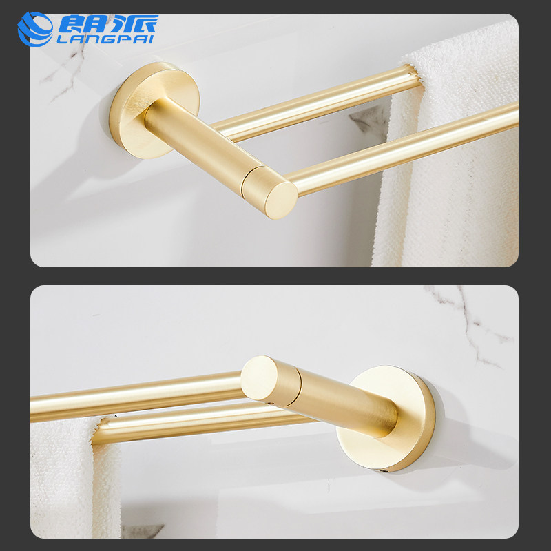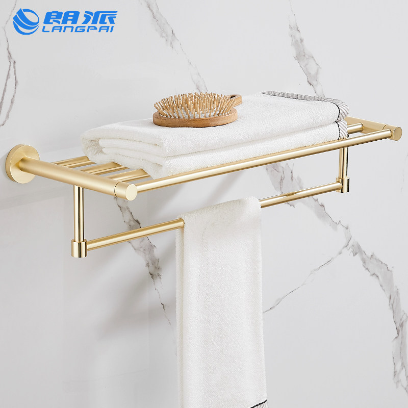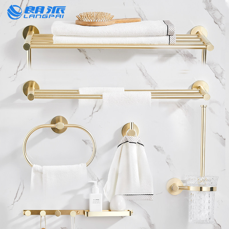 朗派轻奢拉丝金卫生间毛巾架浴巾架套装铜浴室置物架卫浴五金挂件