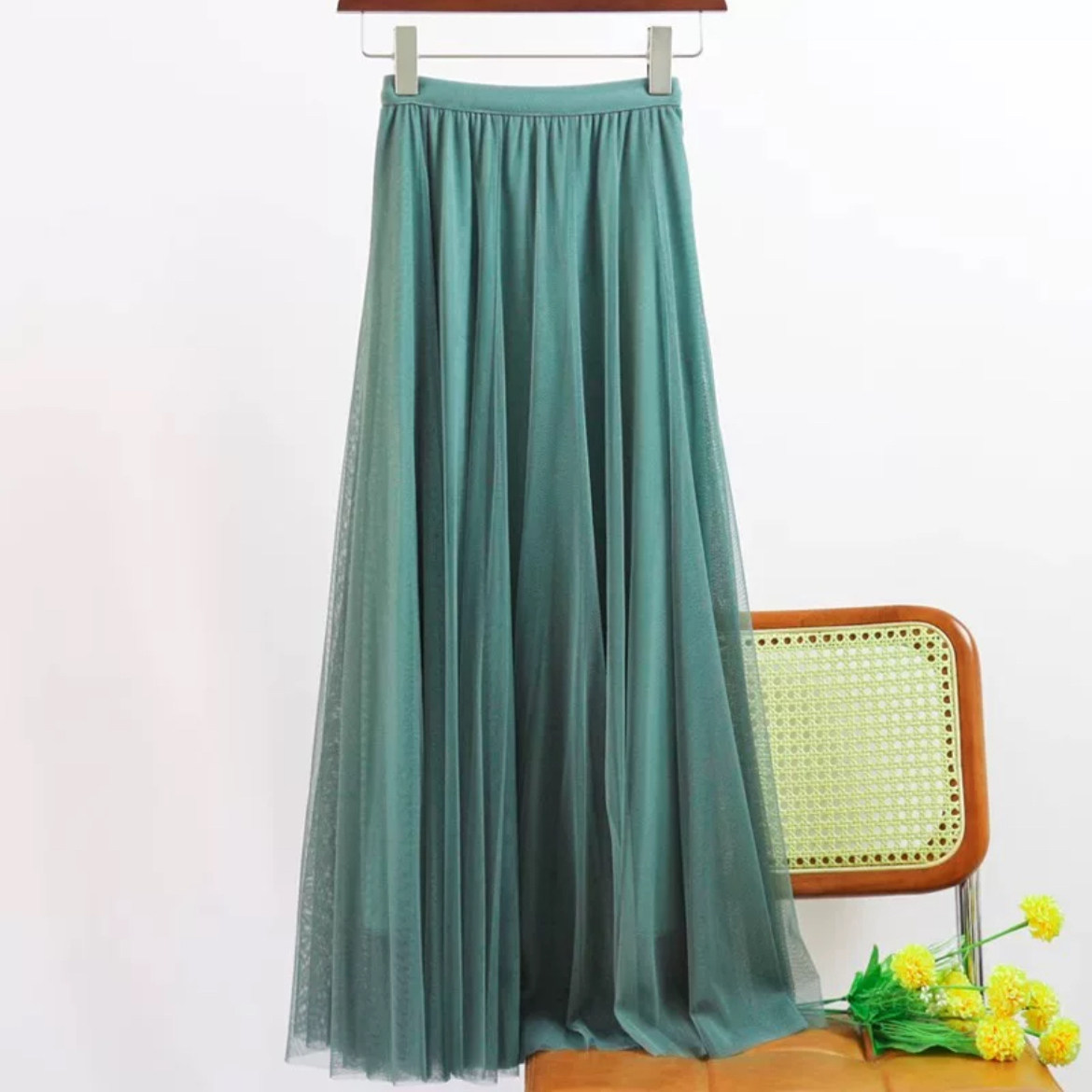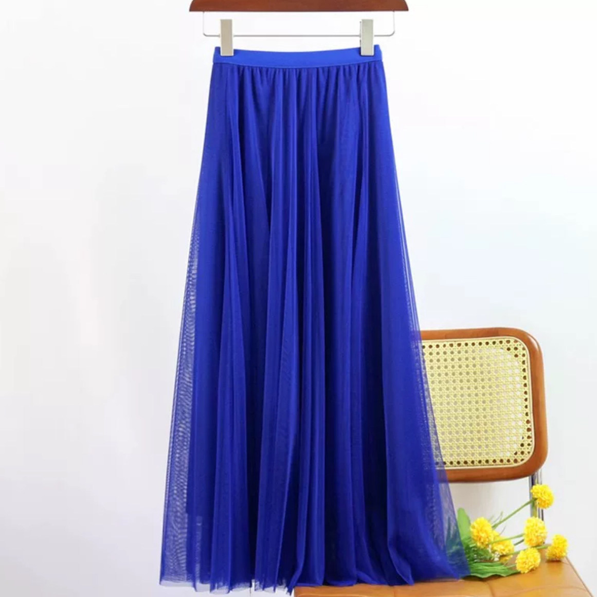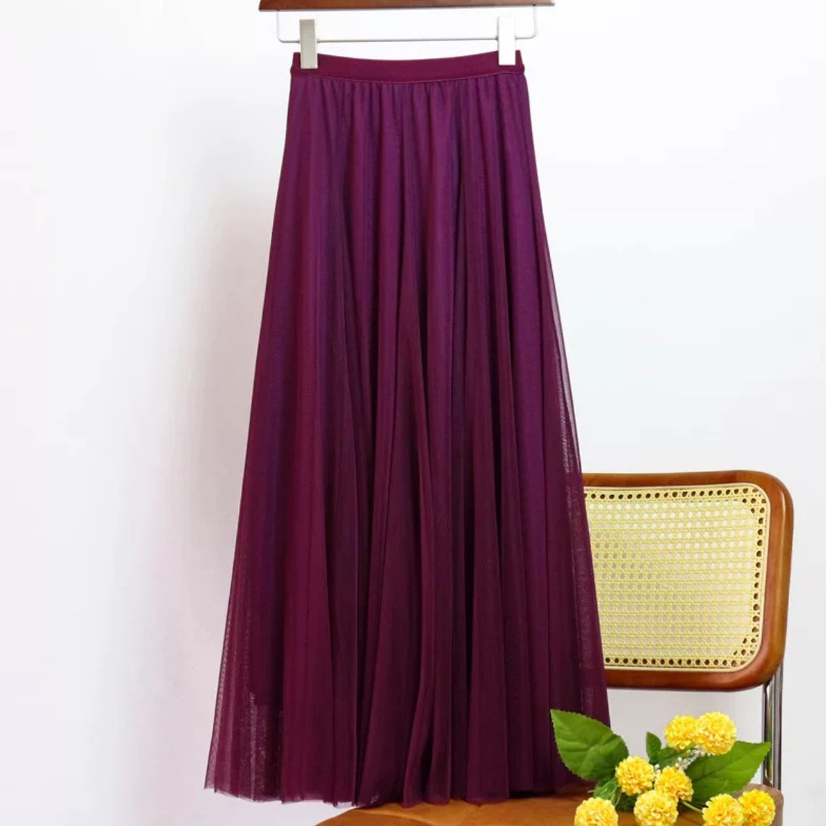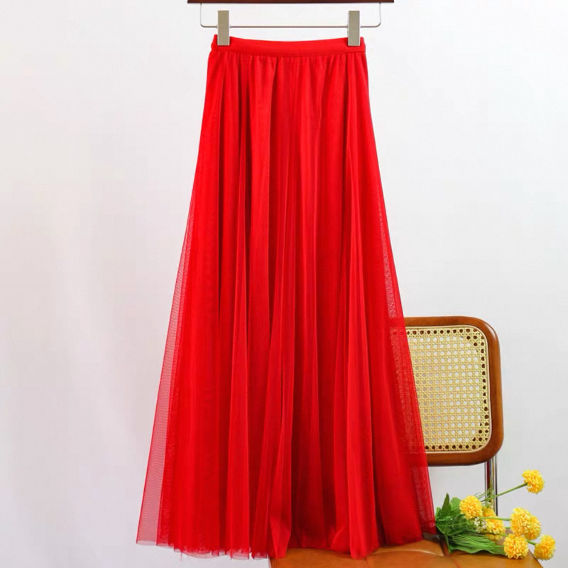 720度大摆舞蹈双层新款半身A字裙黄色演出大摆裙新疆舞中长款纱裙