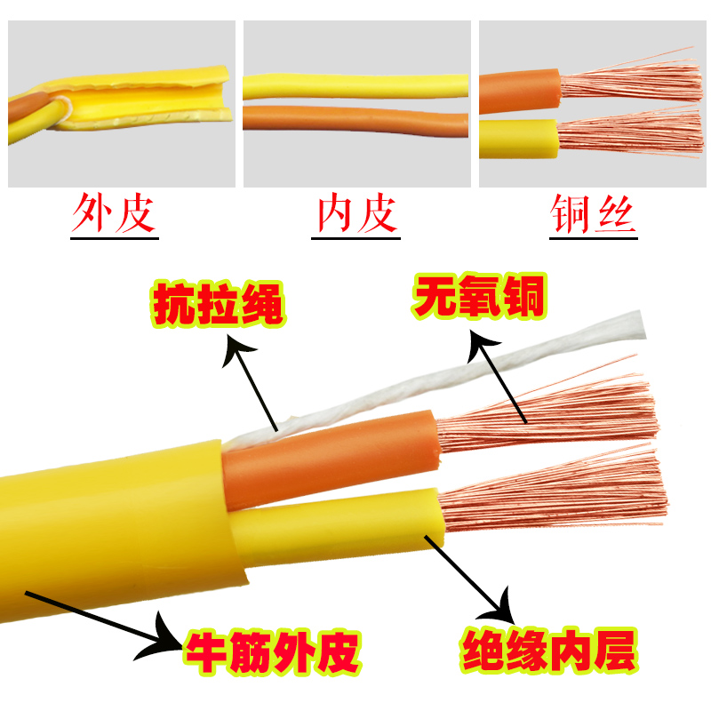 户外纯铜电缆线2芯3芯家用电线2.5 1.5平方4护套线插头电源线延长