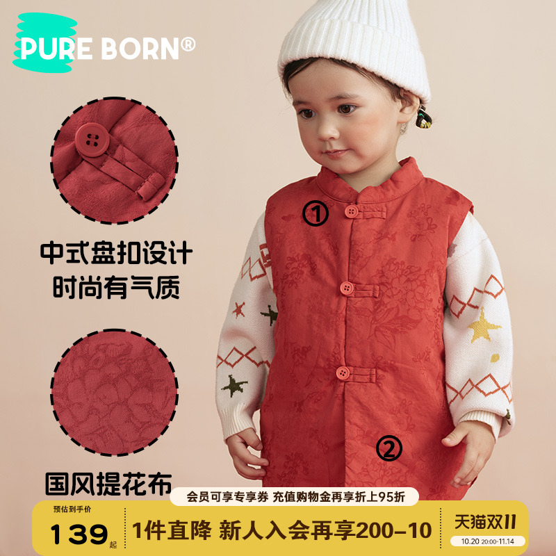 【新中式】博睿恩男女宝宝夹棉马甲2025秋冬款儿童国风保暖棉背心