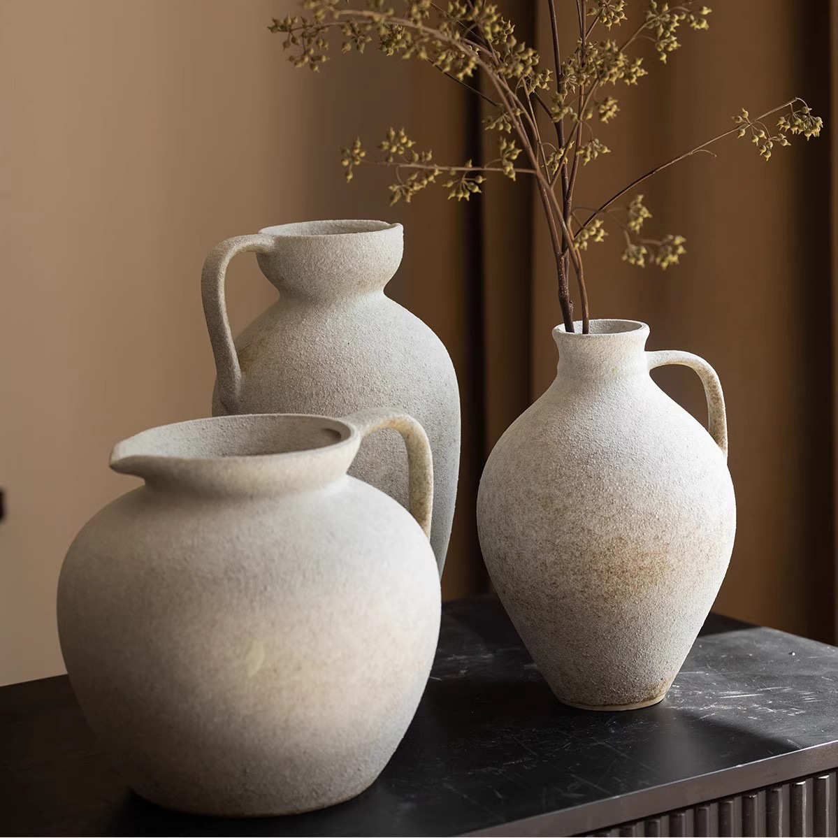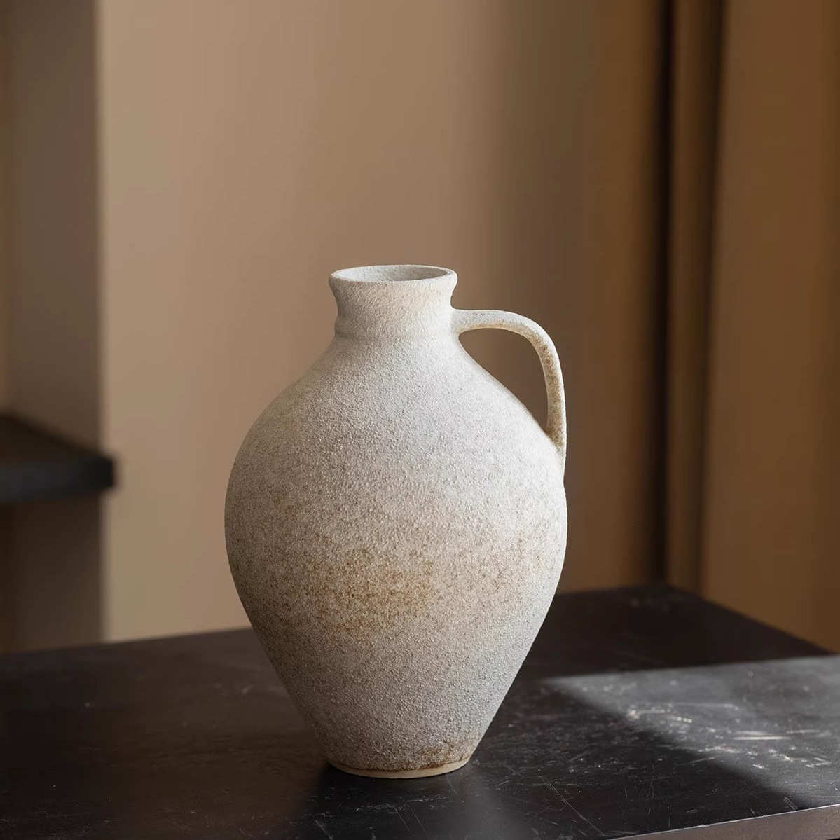 新中式陶瓷复古花瓶景德镇日式侘寂风摆件创意插花器粗耳朵粗陶罐