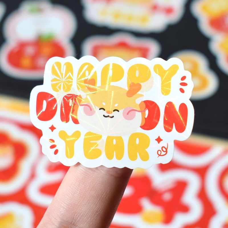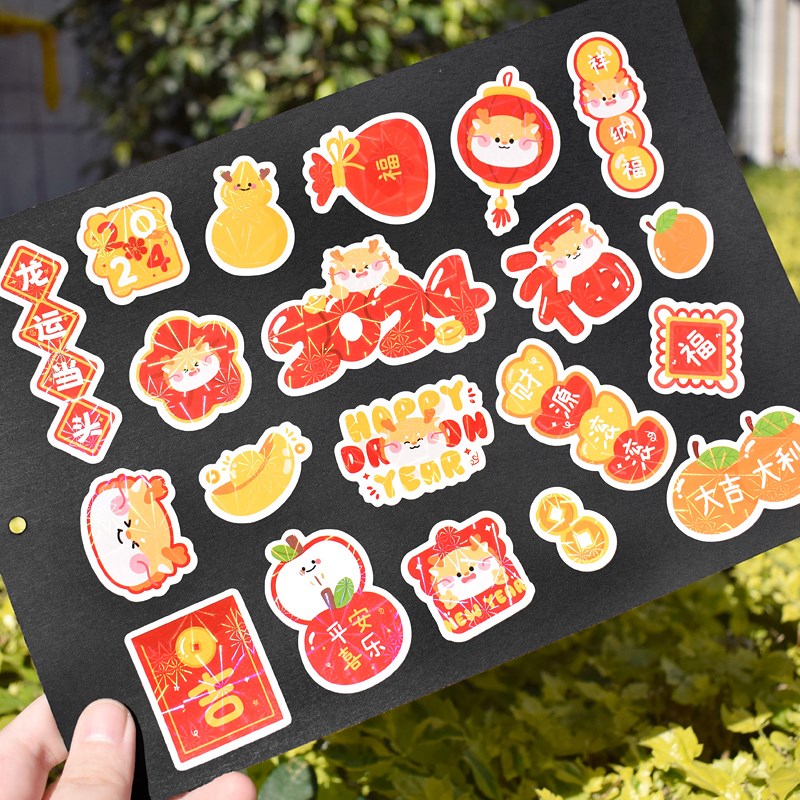龙运当头2024新年高档贴纸镭射亮闪闪变色手账装饰贴画手机手帐玻